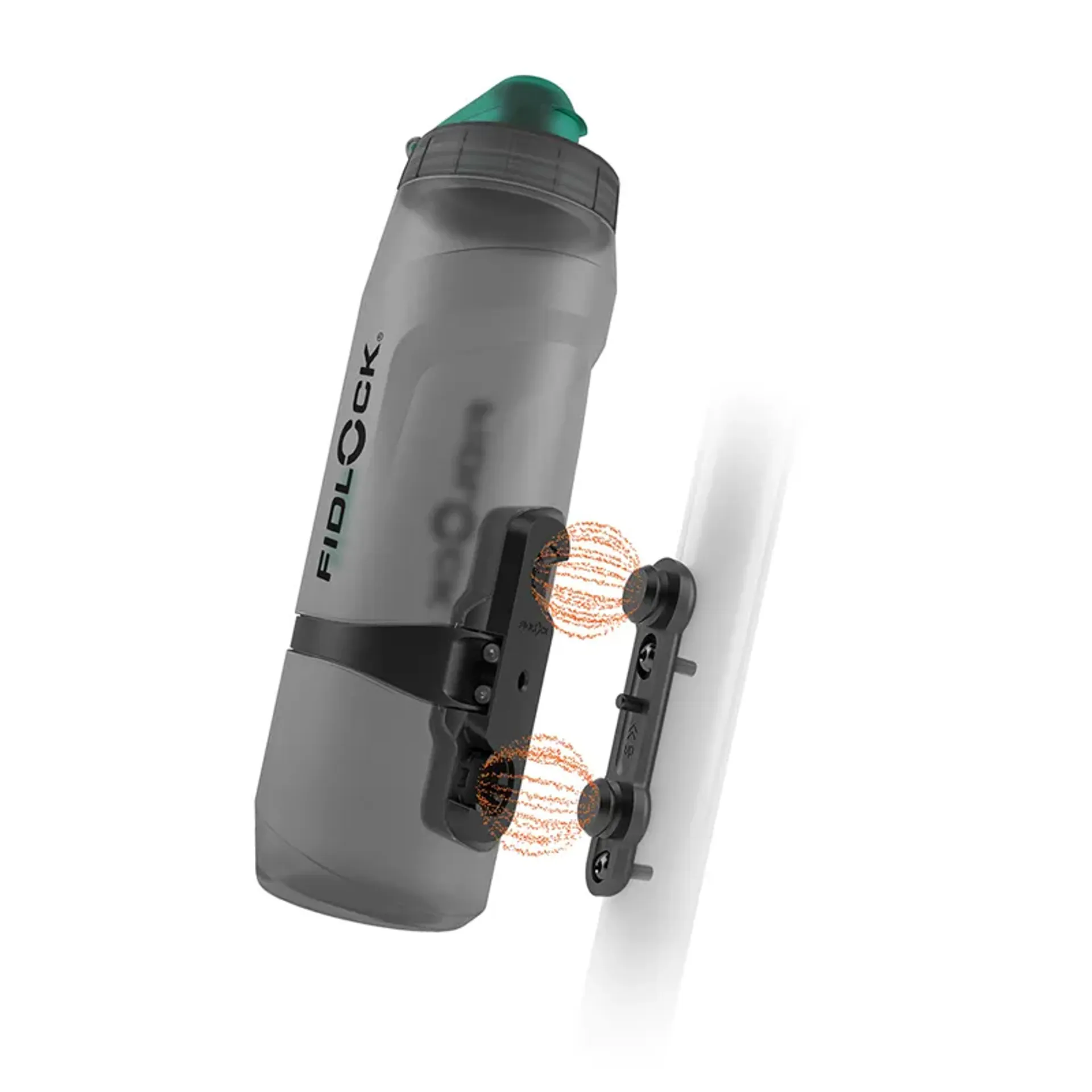 The Fidlock TWIST Anti-bac Bottle 800ml + Bike Base features antibacterial FIDGUARD technology and a magnetic-mechanical mounting system for bike frames.
