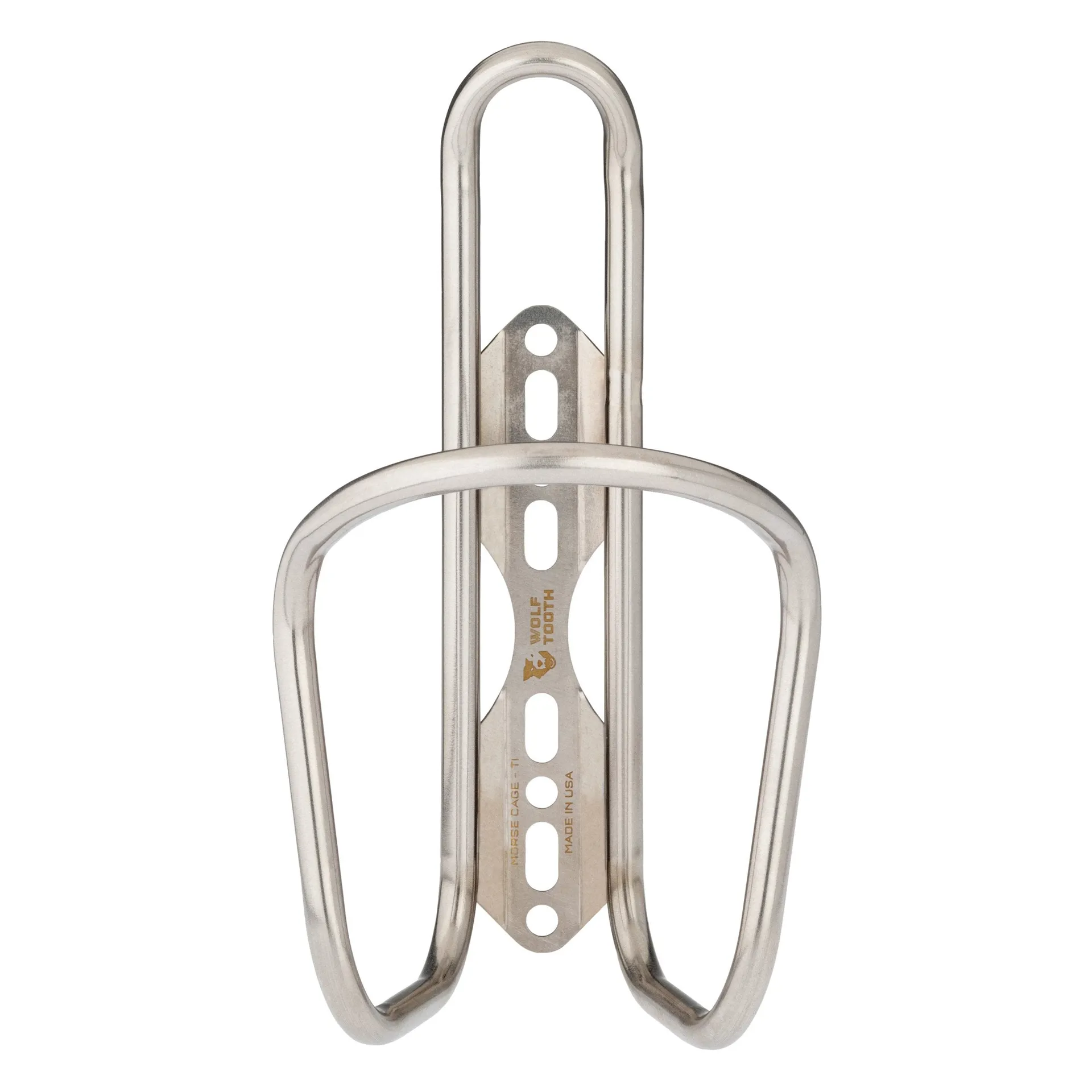The Wolf Tooth morse titanium bottle cage isn't just a beautiful finishing touch to your bike, its position versatility makes it ideal for bikepacking, gravel touring or non-standard geometry rigs.