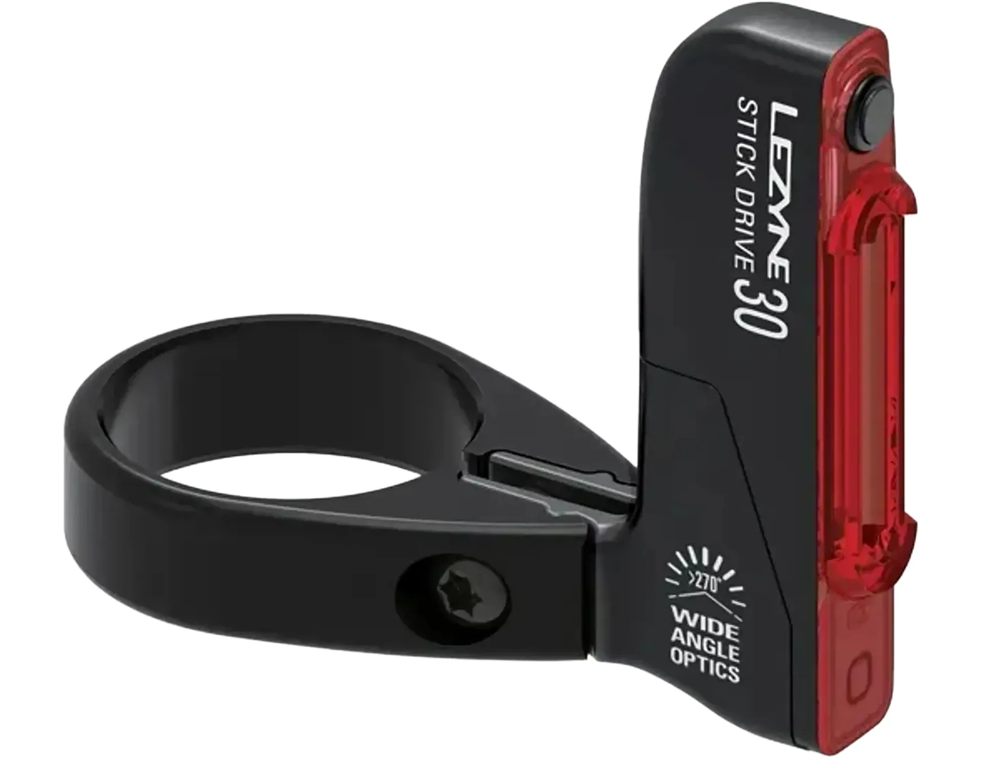 Innovative rear bike light featuring an integrated machined aluminum Ø35.4 MM seat clamp. By replacing the seat clamp with a slender, lightweight design, the Stick Drive Seat Clamp reduces hardware and saves space—ideal for mountain bikes with dropper-style seatposts.