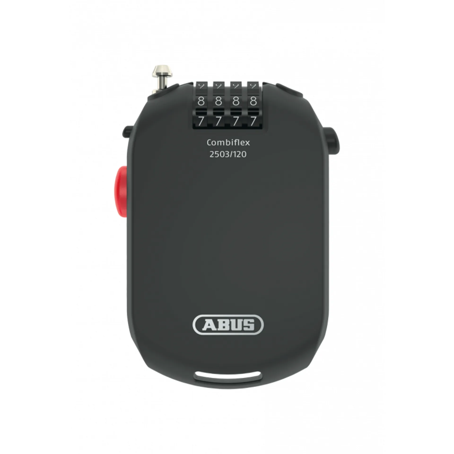 Compact roll-back cable lock as prevention from occasional theft and unauthorized use.