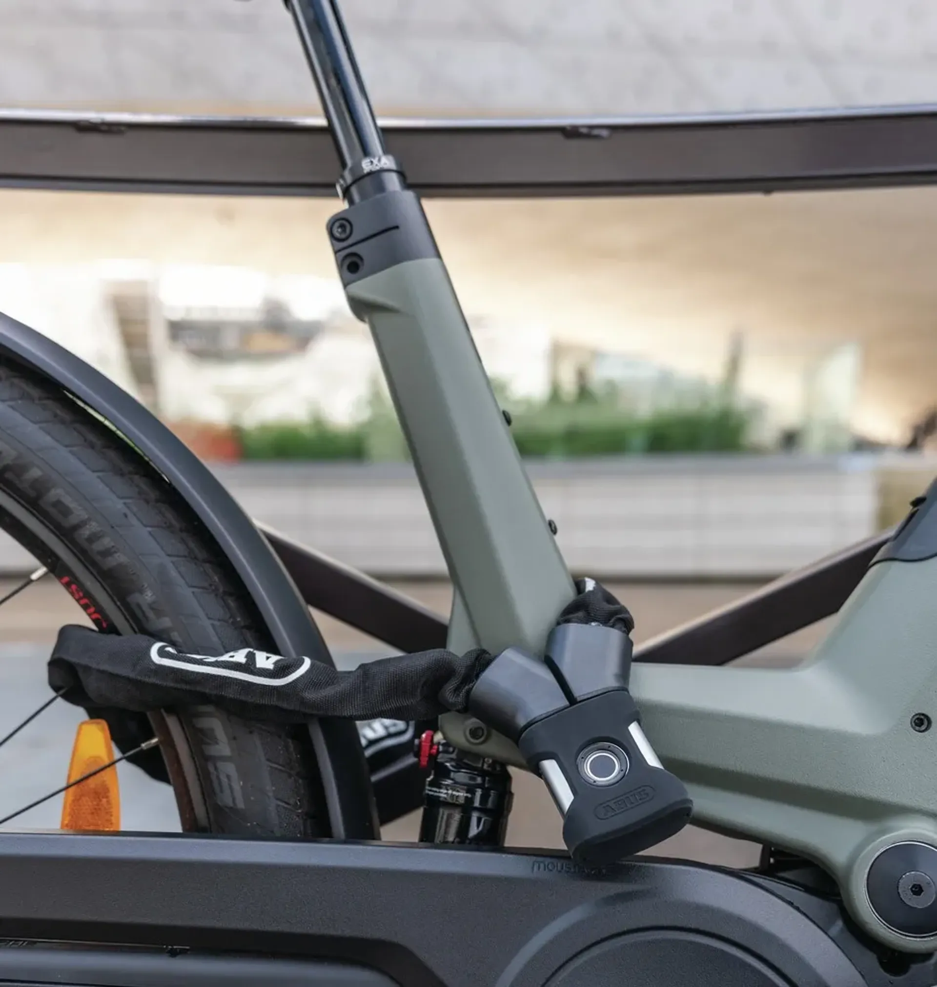 The lock body is encased in a silicone cover to prevent scratches on the bike frame. The IP66 and IP68 certification attests that the lock body is dustproof and weatherproof. A double ball bearing locking provides improved protection against forced opening.