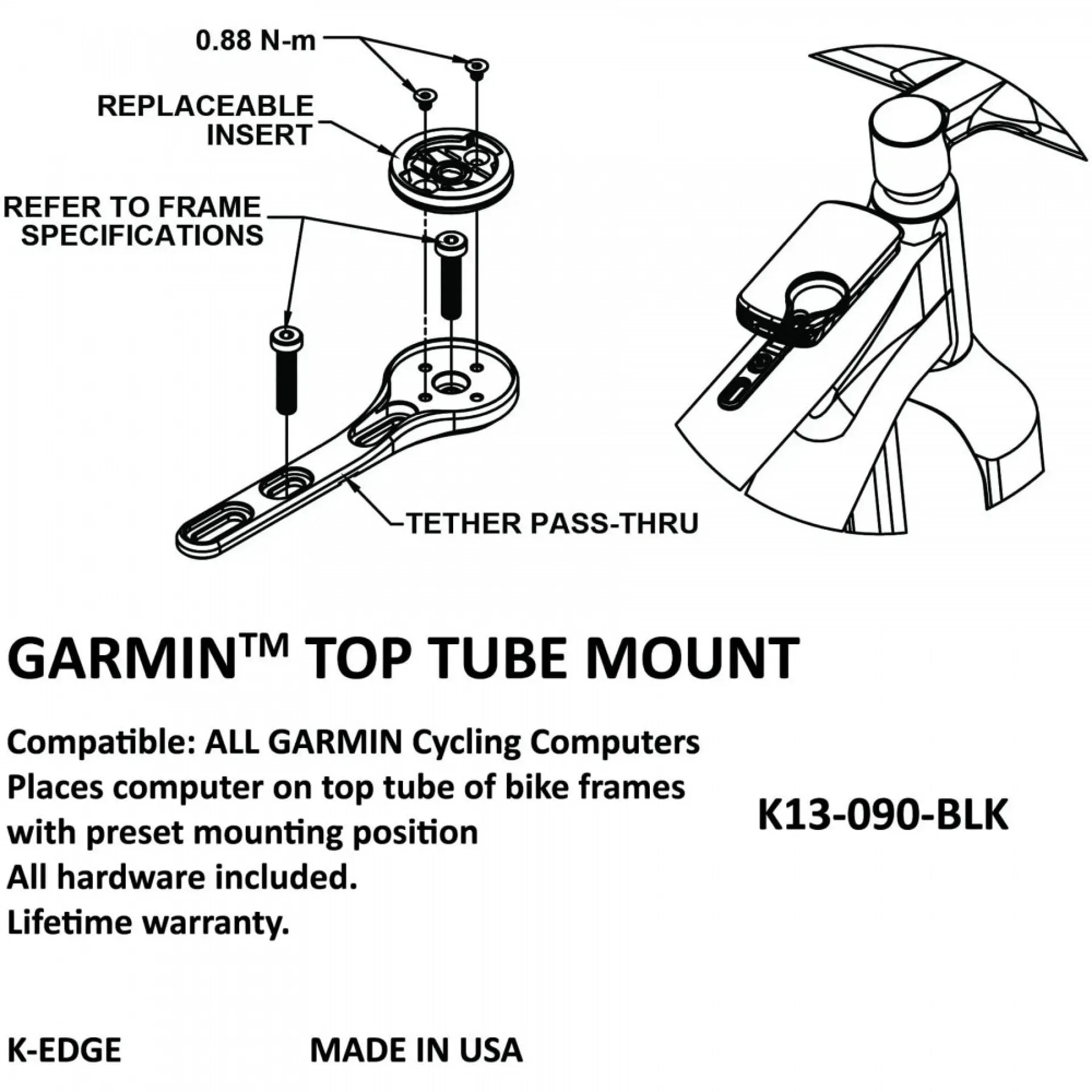 With the surge of top tube mounting positions offered on bike frames and the myriad of riding styles, K-Edge offers a top tube specific mount. This mount keeps the cockpit area free from clutter and protects the computer during demanding rides.