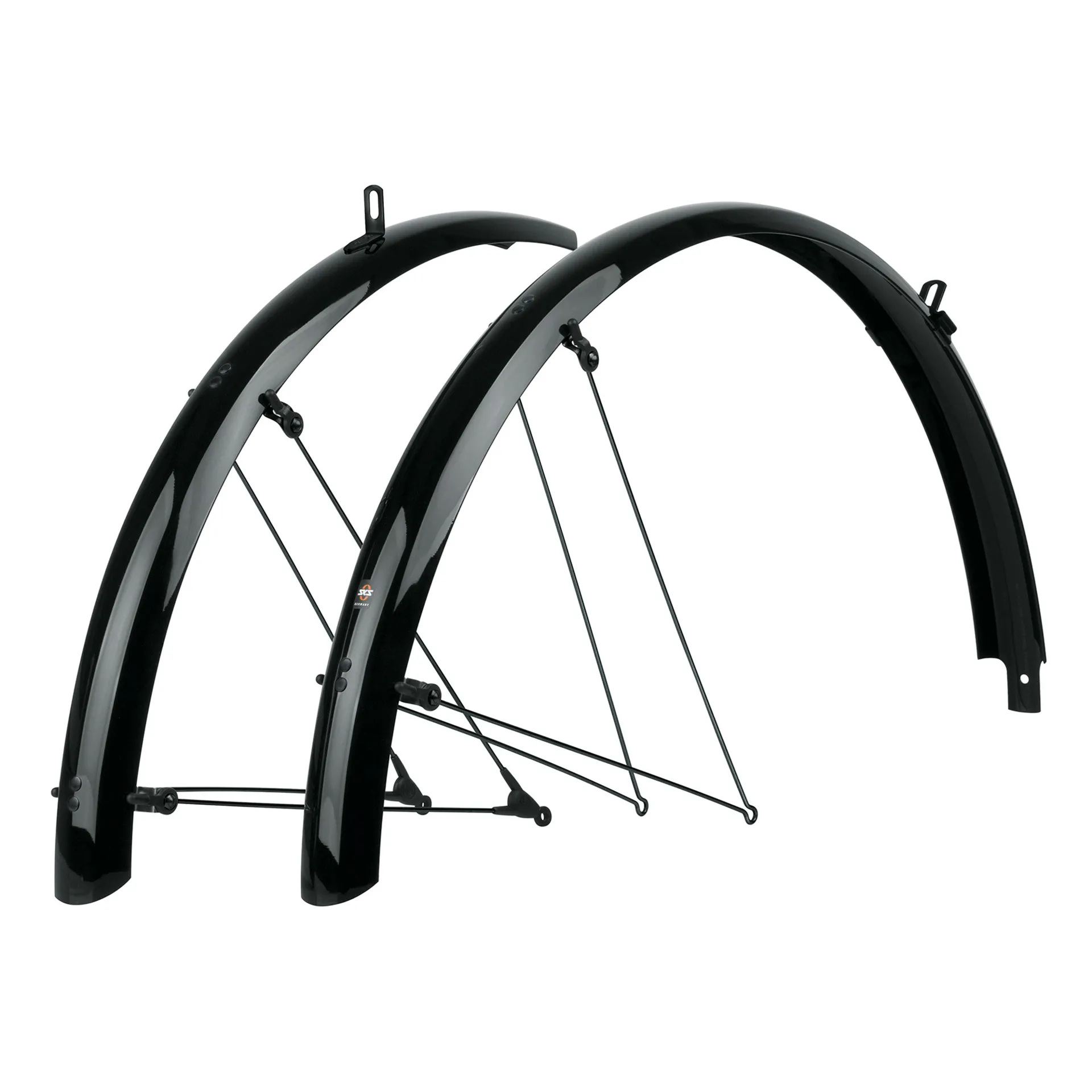 A brilliant performance! The SKS BLUEMELS BASIC mudguard set can not only be perfectly integrated onto the bike but also reliably protects against dirt and spray water. Thanks to the flexible sandwich construction, in which ultra-fine aluminium strips are embedded in a plastic coating, the mudguards are extremely robust, rigid and corrosion-resistant.
