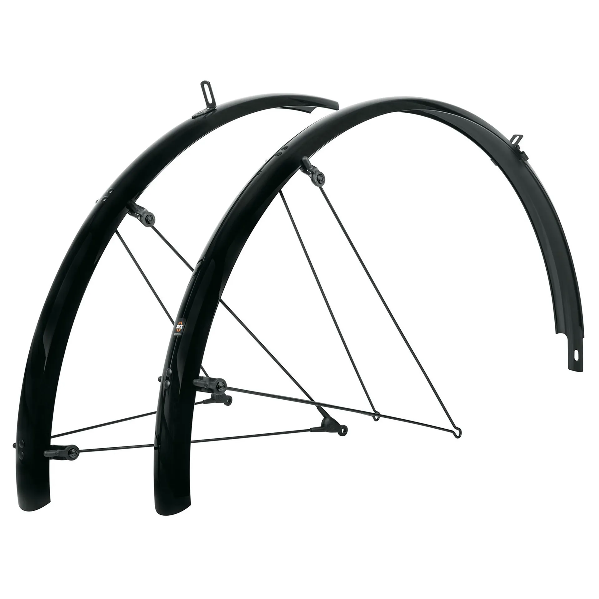 The SKS BLUEMELS mudguard set can not only be perfectly integrated onto the bike but also reliably protects against dirt and spray water. Thanks to the flexible sandwich construction, in which ultra-fine aluminium strips are embedded in a plastic coating, the mudguards are extremely robust, rigid and corrosion-resistant.