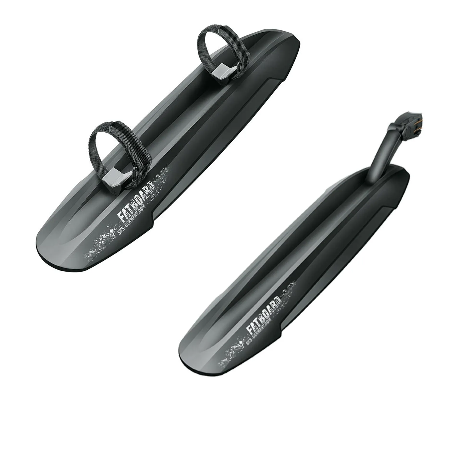 The ultimate set of mudguards for fat tyre bikes offering all round mud protection. The front is mounted easily under the downtube by high-performance straps and the rear fits to the seat post in seconds with the proven toolfree SKS quick-release powerstrap attachment system. The two-hinge arm in the rear allows perfect adjustibility to the geometry of your bike.Features: