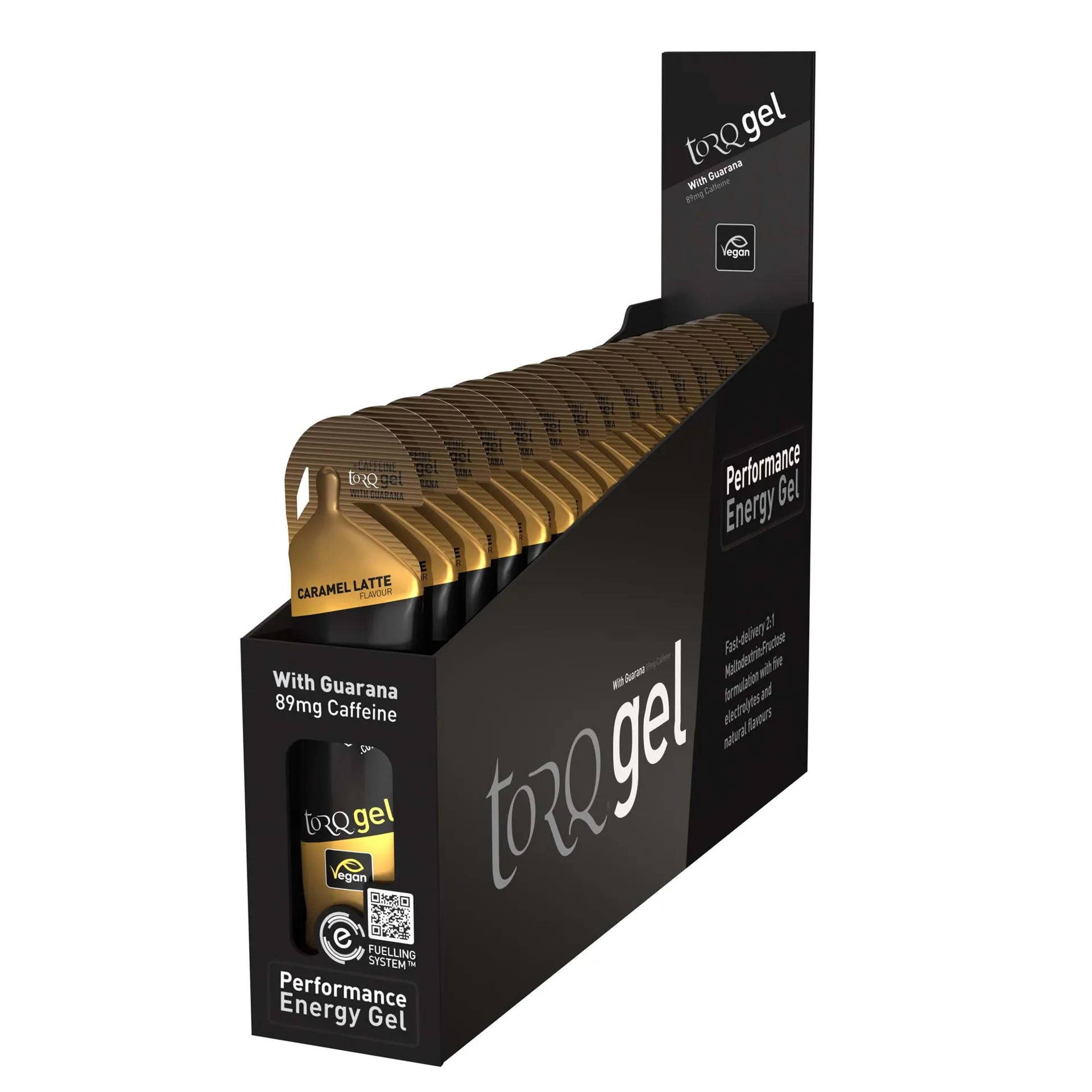 TORQ’s Gels form part of the TORQ Fuelling System, so can be used alongside TORQ’s energy drinks, bars and chews to fuel optimal performancesSuitable for vegans and containing no artificial sweeteners or colours.1 box = 15 units.