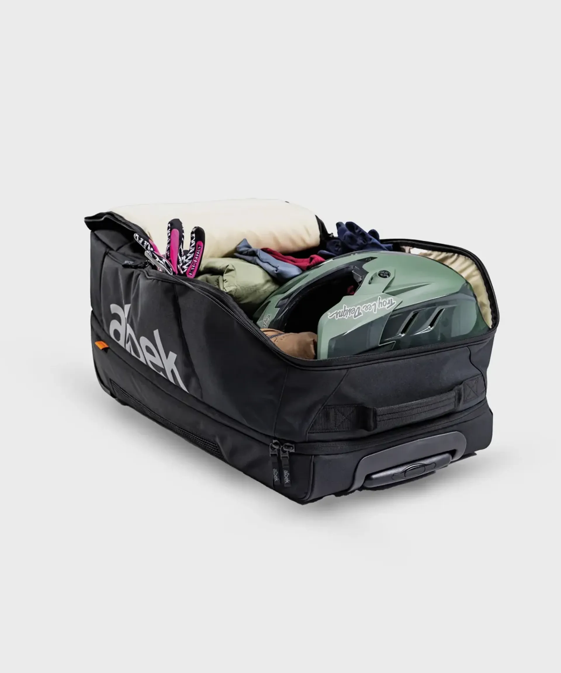 A waterproof boot, knee, and protection compartment keeps dirt contained, while the padded helmet zone and integrated goggle vault protect your essentials. The spacious main section fits all your gear, with loads of room to spare for multiple kits.