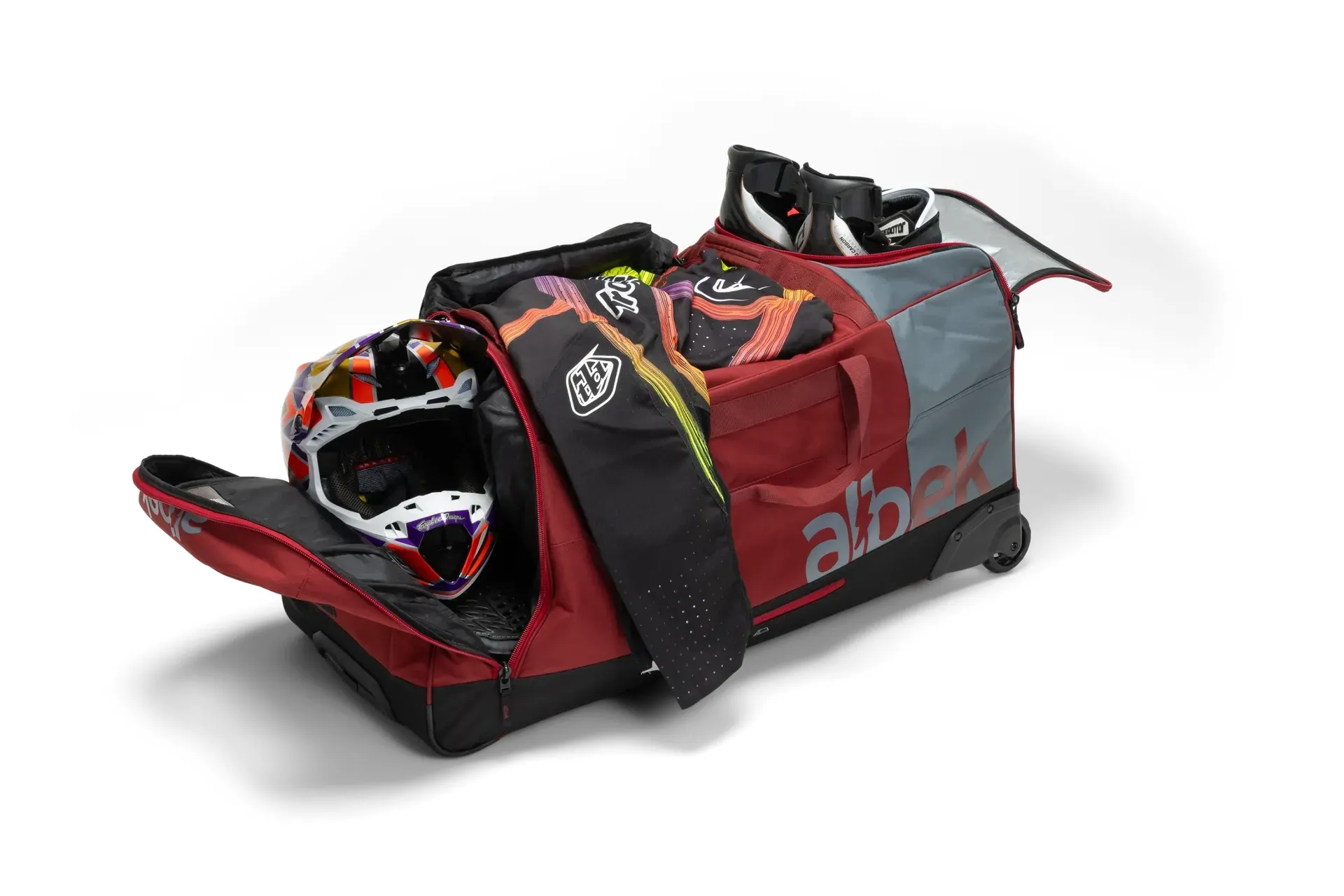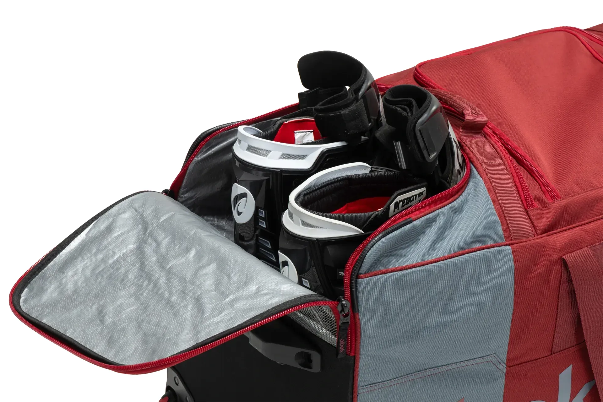 The Meridian Gear Bag has been engineered specifically around the key items the bag needs to carry and keep organised. The Meridian Gear Bag started off as a blank piece of paper project. It is comprised of four specific compartments: a boot/knee brace locker with pull out waterproof lining, a padded helmet compartment, an integrated goggle vault with a separate stash for lenses and roll-offs, and a generously sized main section that can handle all your protective gear with ample room for multiple kits for that race day assault.