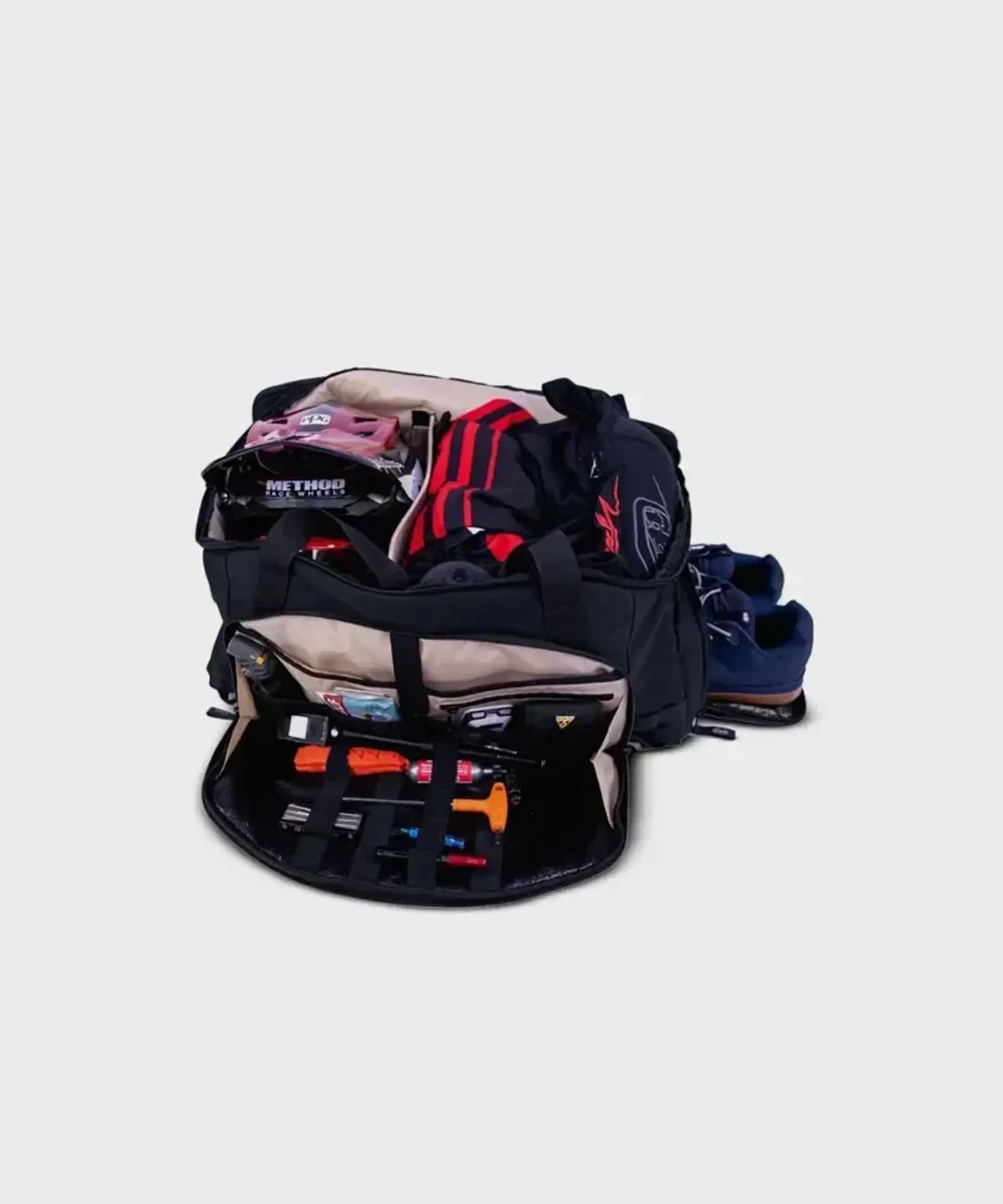 The Albek Skytrail Duffel packs a serious punch in the organisation stakes. This duffel is specifically designed to house all your mission-critical equipment, whether it be for an MTB trip to the mountains, a day at the racetrack, that weekend jet-away, or just keeping all your kit sorted in one place. The Skytrail has you well and truly covered and will get you to and from your destination with unrivalled style and ease. Like the A-Team, the Skytrail has a few tricks up its sleeve, combining the storage capability of a duffel and the practicality of a backpack, making it adventure-ready anywhere, anytime.