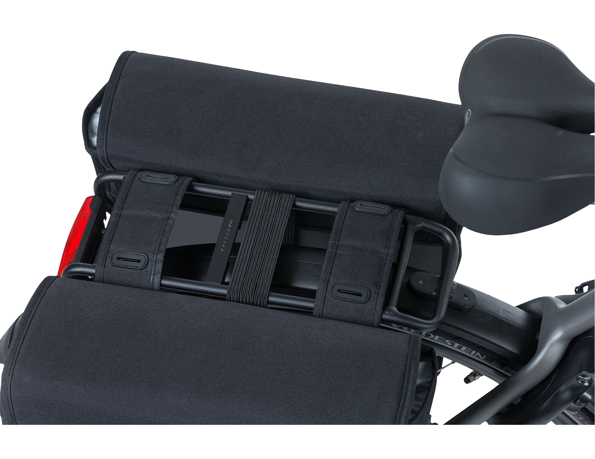 The Basil GO Double Bag combines sleek style and everyday practicality — a 32L pannier with smart storage, reflective details and e-bike compatibility.