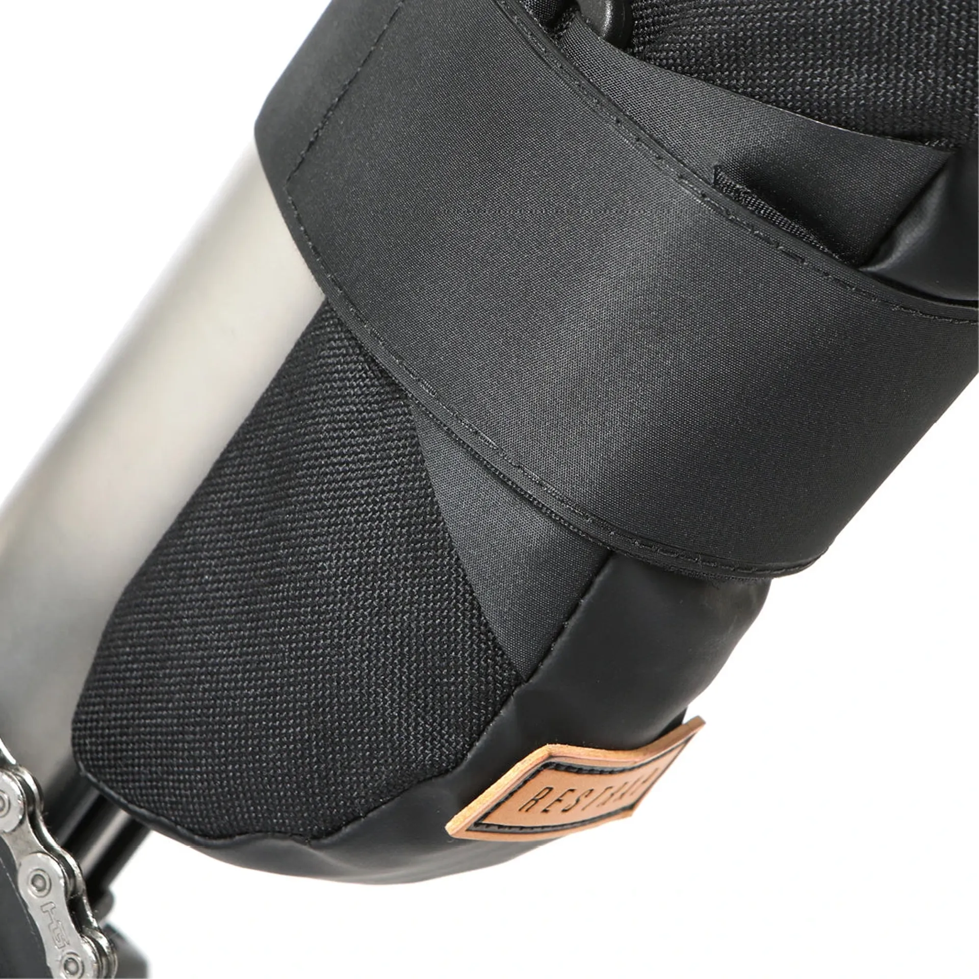 The Downtube Bag has a fully waterproof construction, with a roll top closure to keep the elements, road spray, or trail debris out. A single integrated Velcro strap wraps around the bag and downtube, securing it tightly in place and minimising rattles. A stitched-in grip pad prevents the bag from sliding out of position. The bolt-free attachment means the Downtube Bag can be swapped from bike to bike in seconds.
