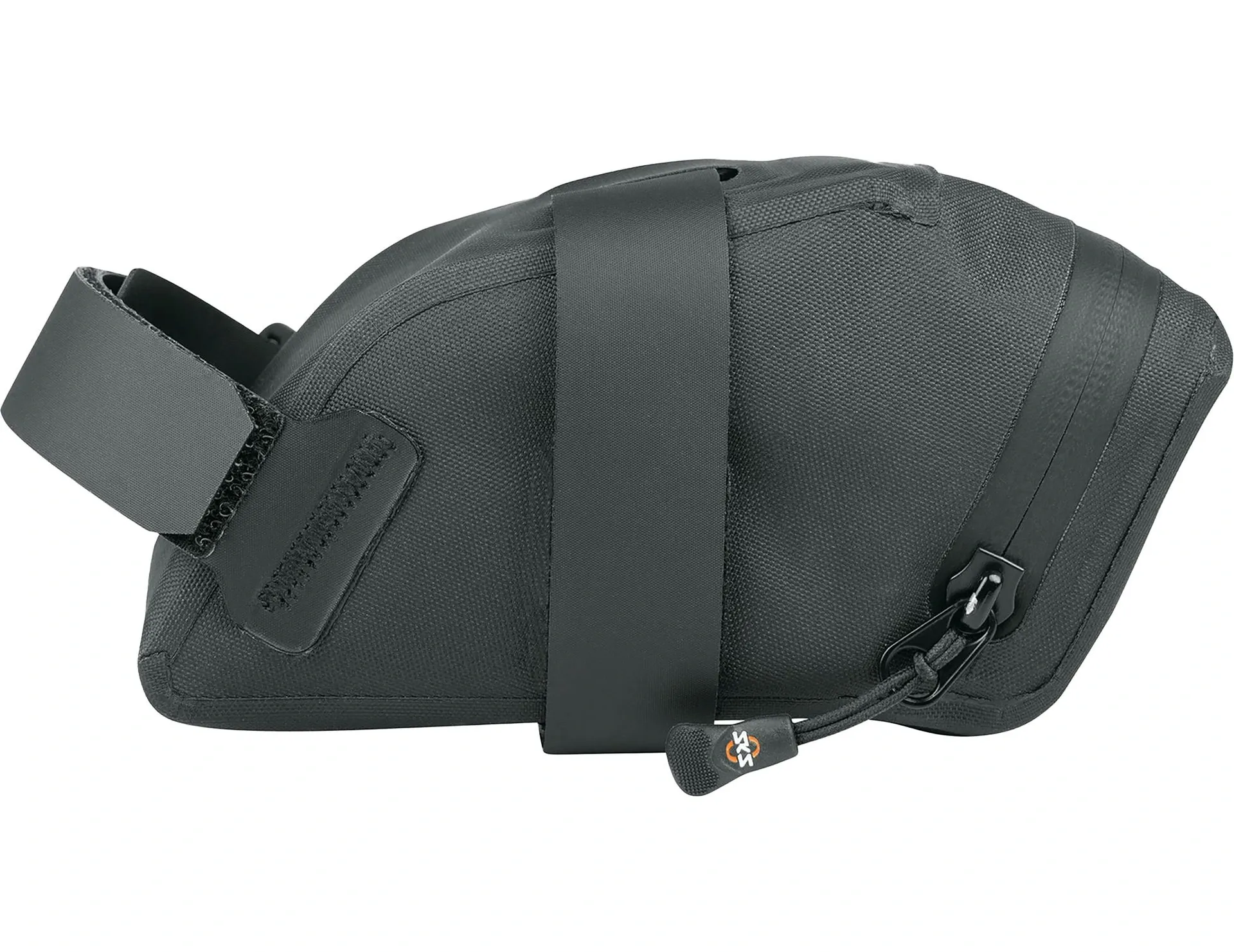 Two mesh inner pockets keep keys or money safe. The SKS saddle bag can be easily mounted under the bike saddle with the aid of the non-slip hook and loop fasteners. The hook and loop fasteners can be individually shortened and replaced. A rear light bracket is located on the rear side of the bag as well as a reflective SKS logo for visibility at dusk.