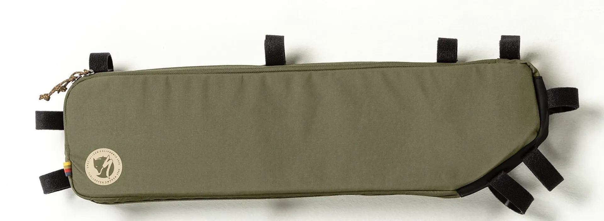 Two-way zippered frame bag with large opening for easy access to biking essentials.