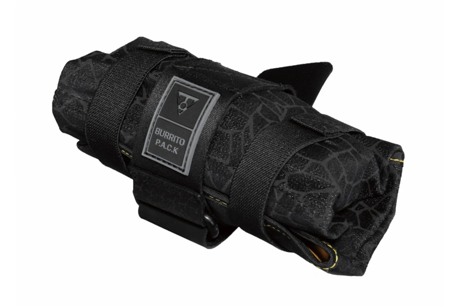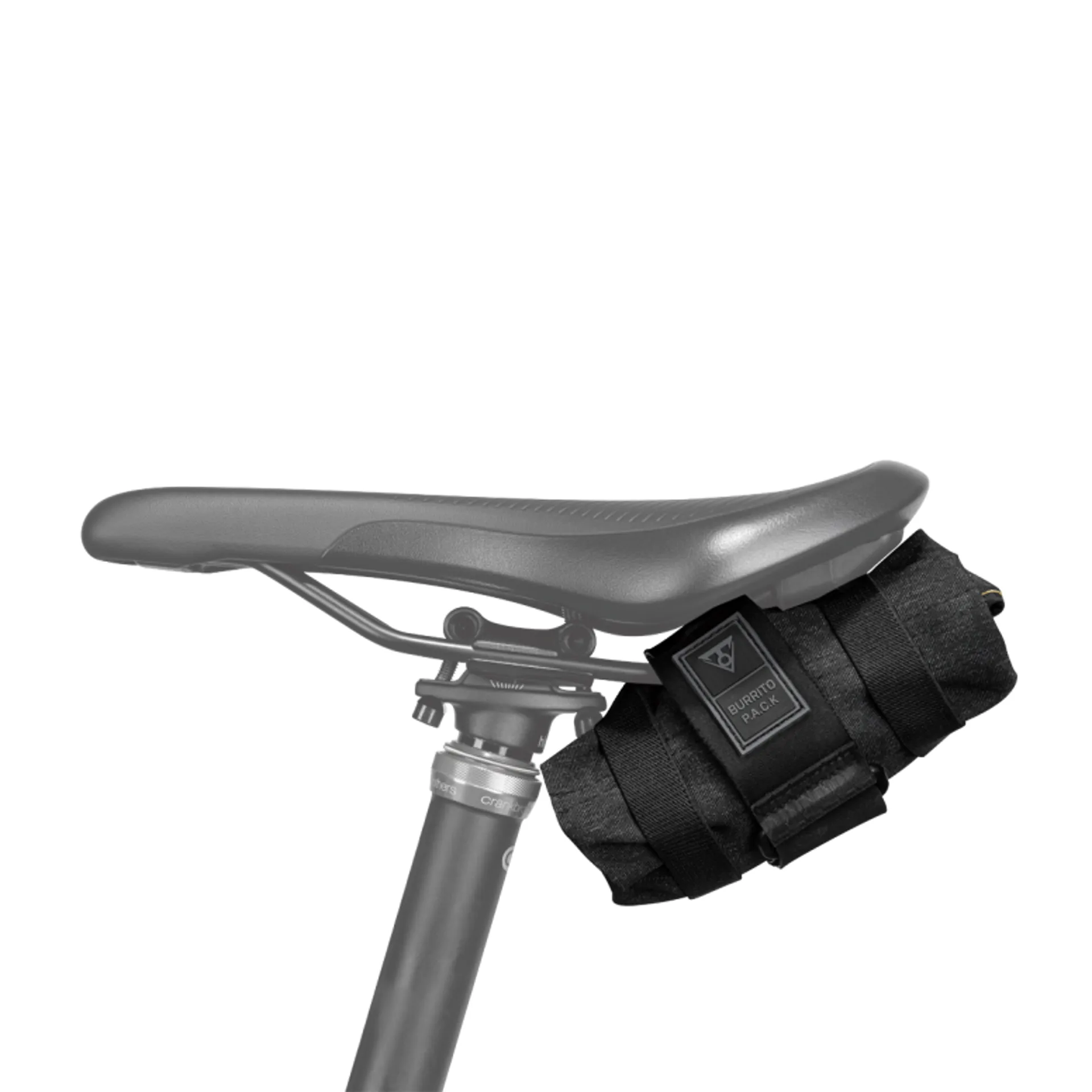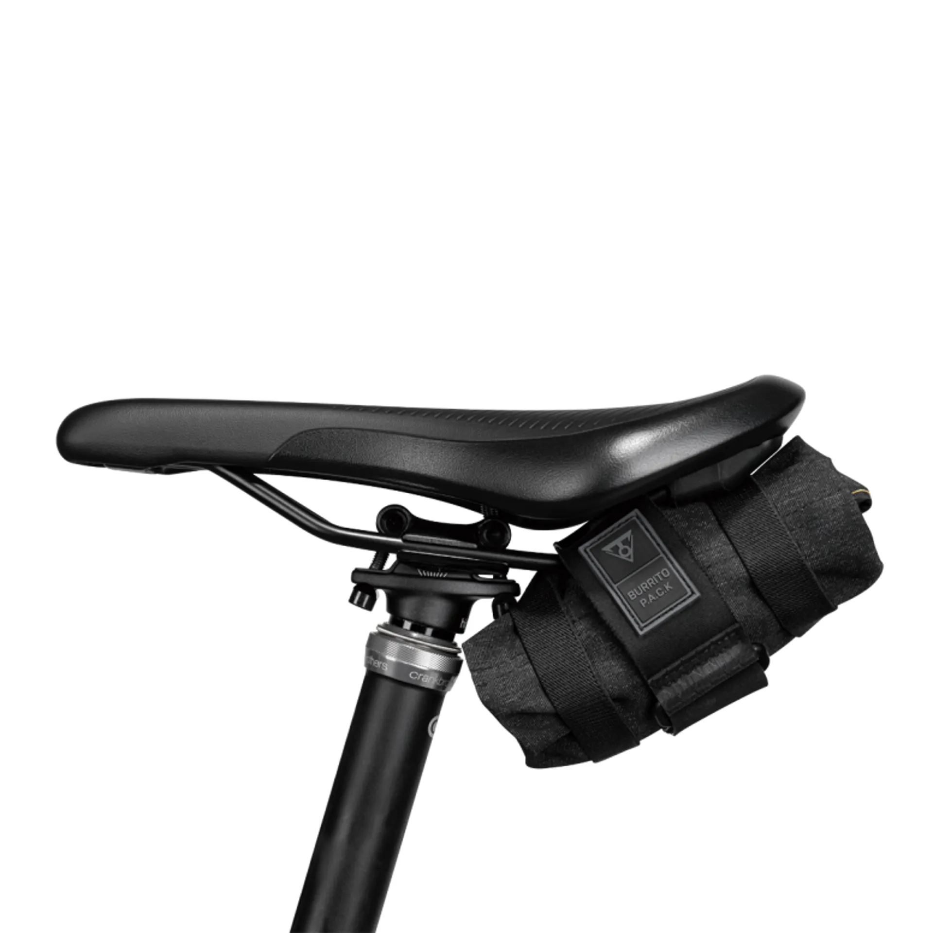 A compact roll-up with three compartments and internal organizers to keep gear and small items neatly in place.The durable water repellent and stain resistant coating keeps contents dry and cleans up easily. Secure strap provides tool-free mounting to frame tube, seat post or to saddle rails.