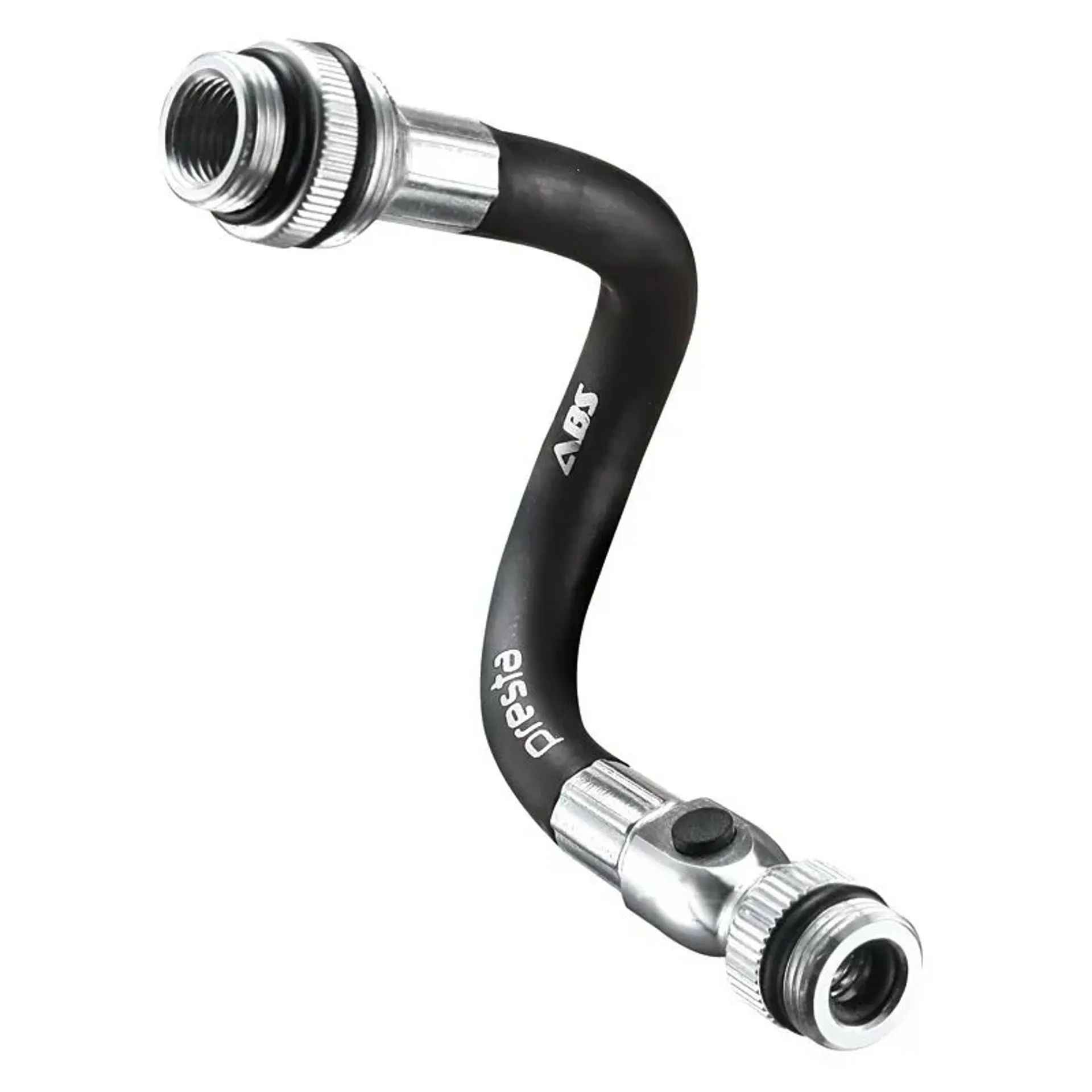 The replacement ABS Flex Hose for Lezyne Pocket Drive hand pumps features a Presta threaded end and a Schrader threaded end, along with an integrated ABS valve. When using Presta valves, the ABS allows users to release the air pressure in the pump hose, making it easy to remove from the valve and eliminating the chance of unthreading removable Presta valve cores after inflation. When using Schrader valves, the ABS allows users to adjust tyre pressure.