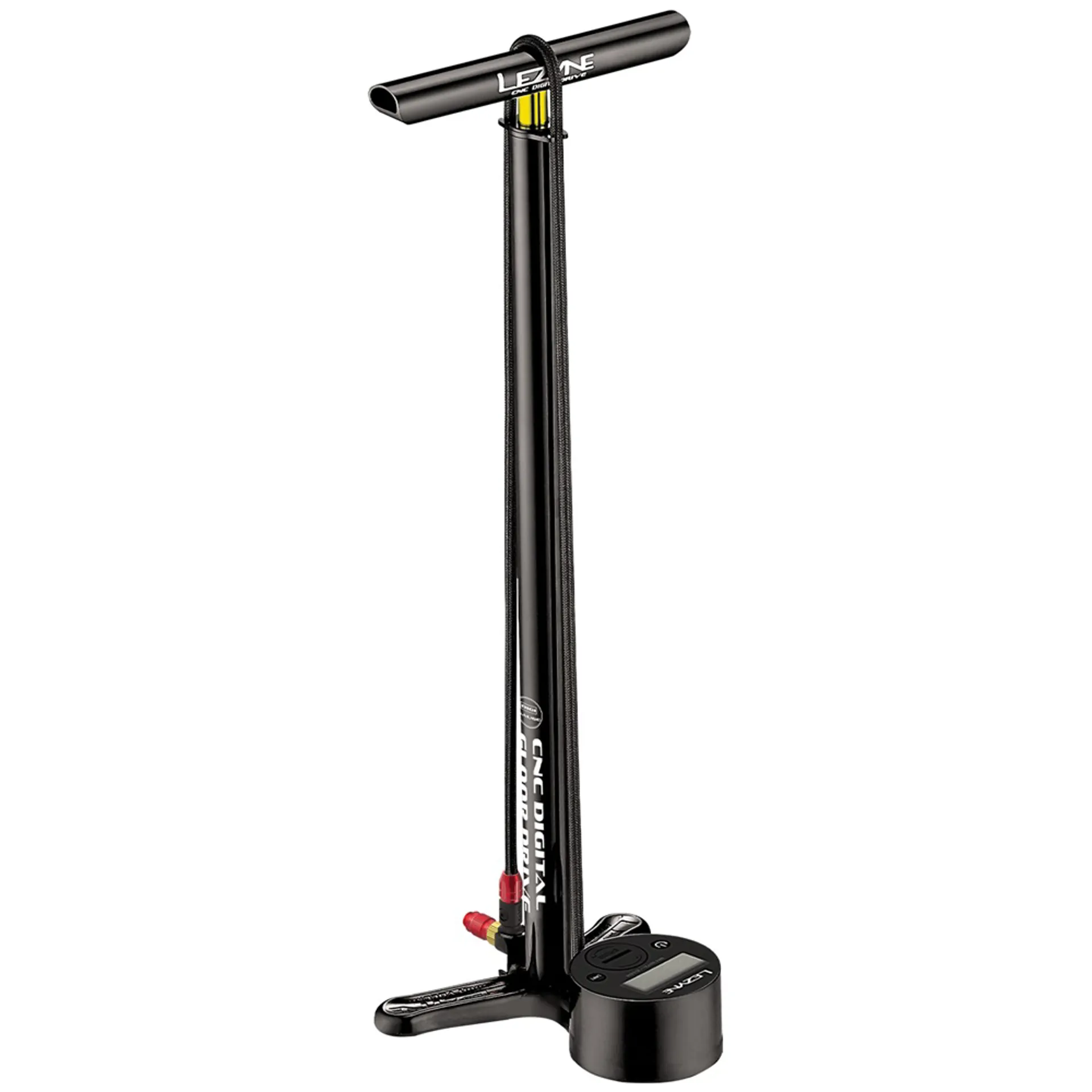 Its fully CNC machined aluminium construction and hardware are built to last a lifetime and replacement wear parts are readily available. Highly accurate, easy-to-read 3.5” (88.9mm) digital gauge. The CNC Digital Drive comes with an extra-long, nylon-reinforced braided hose with aluminium couplers. At the end of the hose is the top-of-the-line ABS1 Pro floor pump chuck.