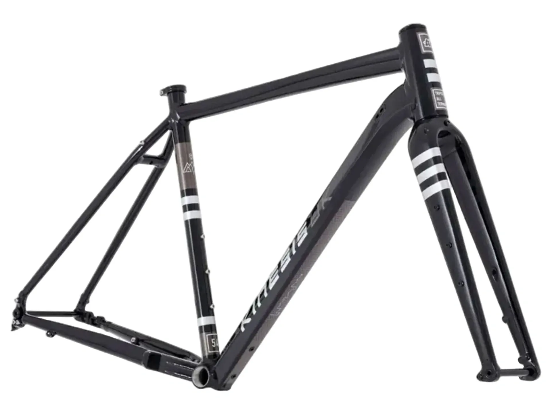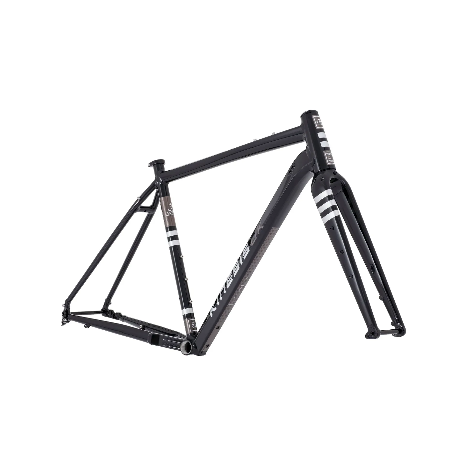 The Kinesis Tripster AT Plus is a high-capability gravel frameset featuring a lightweight 6069 aluminium construction, 700c x 50mm tyre clearance, and an all-new carbon fork. Designed for adventure, it includes extensive mounting points for bike-packing and internal routing for dropper posts and dynamo systems.