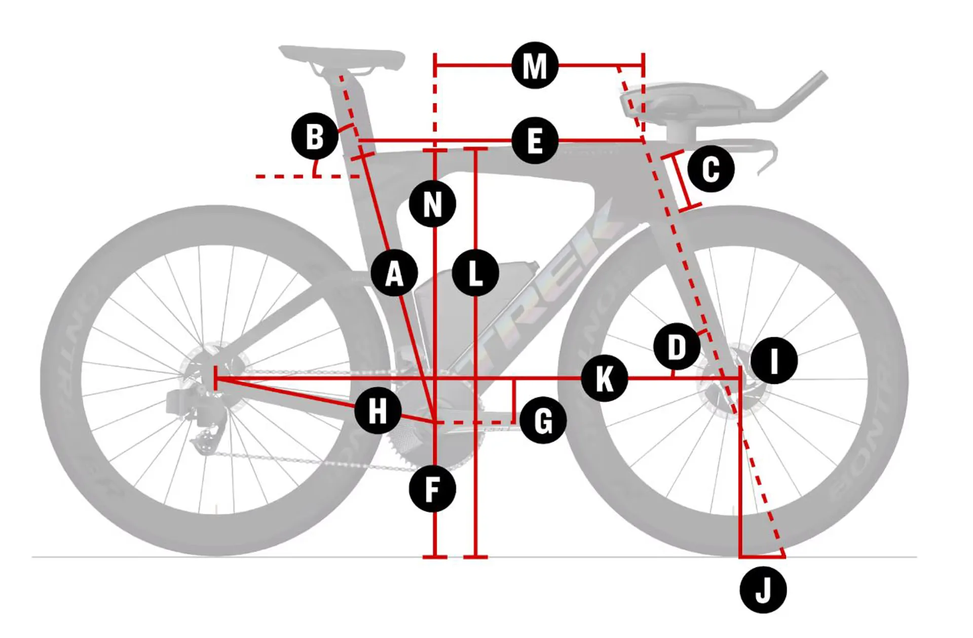 Frame size letterWheel sizeA —Seat tubeB —Seat tube angleC —Head tube lengthD —Head angleE —Effective top tubeG —Bottom bracket dropH —Chainstay lengthI —OffsetJ —TrailK —WheelbaseL —StandoverM —Frame reachN —Frame stackSaddle rail height min (w/short mast)Saddle rail height max (w/short mast)Saddle rail height min (w/tall mast)Saddle rail height max (w/tall mast)