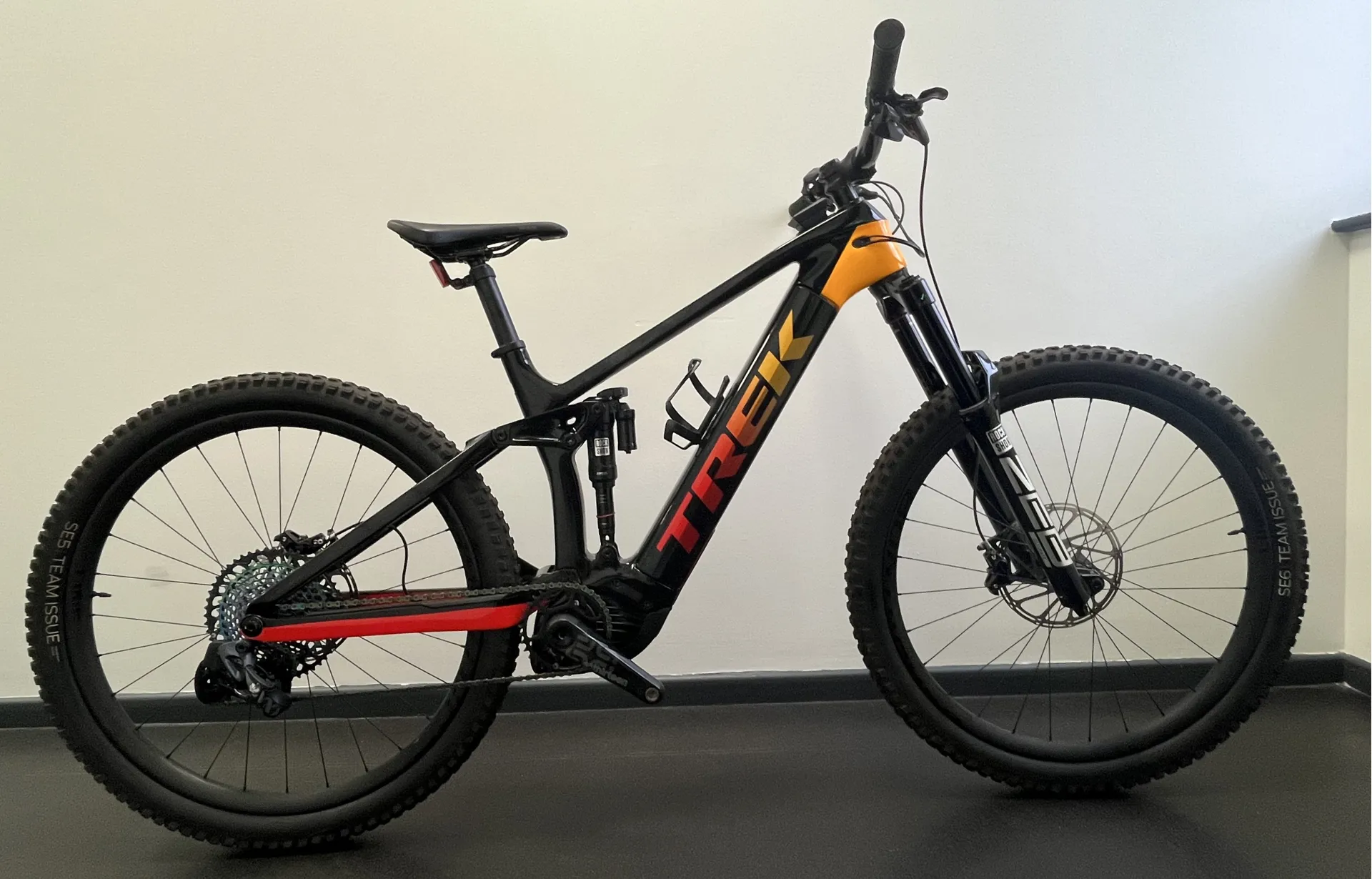 This Trek Rail 9.9 xx1 AXS Electric Full Suspension Mountain Bike 2023 in Size Large is an Ex-Demo bike, it shows some signs of use on the drivetrain, brakes and tyres from an extended test ride. Please see photos for condition of the bike. The odometer reads 65 miles.All bikes are fully inspected to ensure they are free of any damage, and we offer full manufacturer's warranty on all our ex display and ex demo bikes.The Rail 9.9 is Trek's best long-travel electric mountain bike. You get an extra-beefy carbon frame, unbelievably smooth RockShox suspension, SRAM's best wireless electronic drivetrain and a powerful Bosch Performance Line CX motor with an extra-long range battery and the new smart system LED remote and Kiox display that pair with the eBike Flow app to give you activity tracking, navigation and Bluetooth connectivity.
