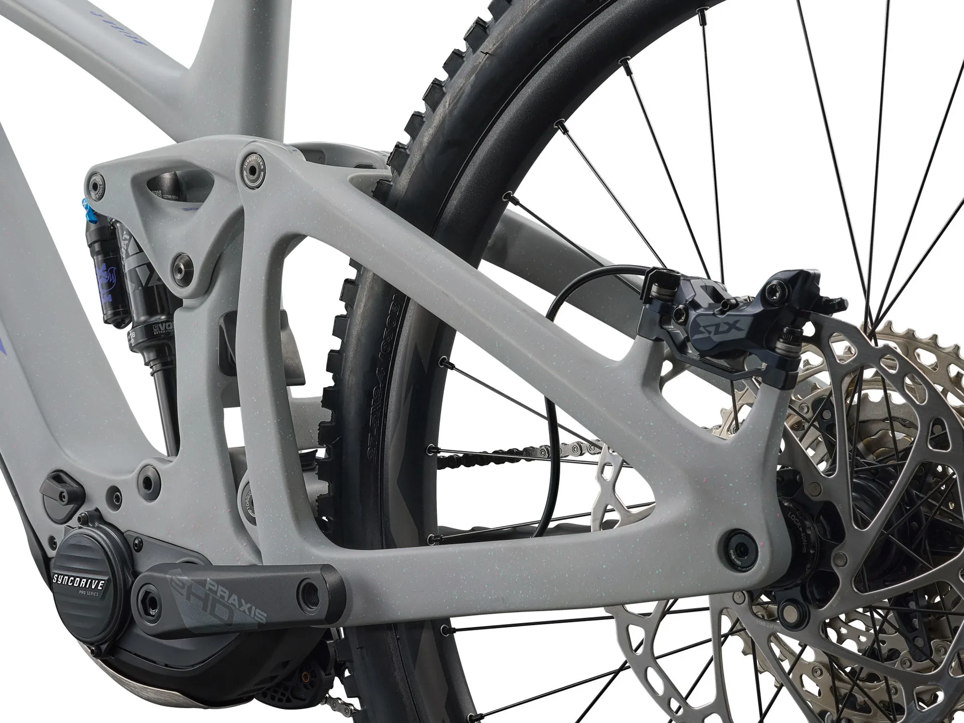 - Rear Suspension: Fox Float X Performance, EVOL Large Volume sleeve, 205x65mm Trunnion mount, custom tuned