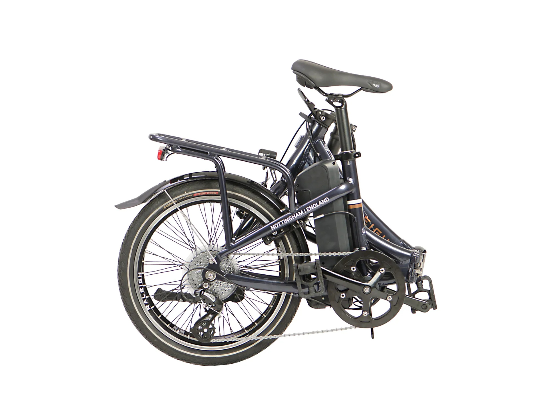 Strong but light folding frame makes this bike a pleasure to ride. Powerful tranzx r15 rear wheel motor will get you around quickly and smoothly. The latest generation 260wh battery provides a range of upto 40km depending on the terrain your riding on. Fully equipped with lights, rack, mudguards and a kick stand so that you're ready to go straight from the shop. 8 wide range Shimano gears to help you get up the hills.