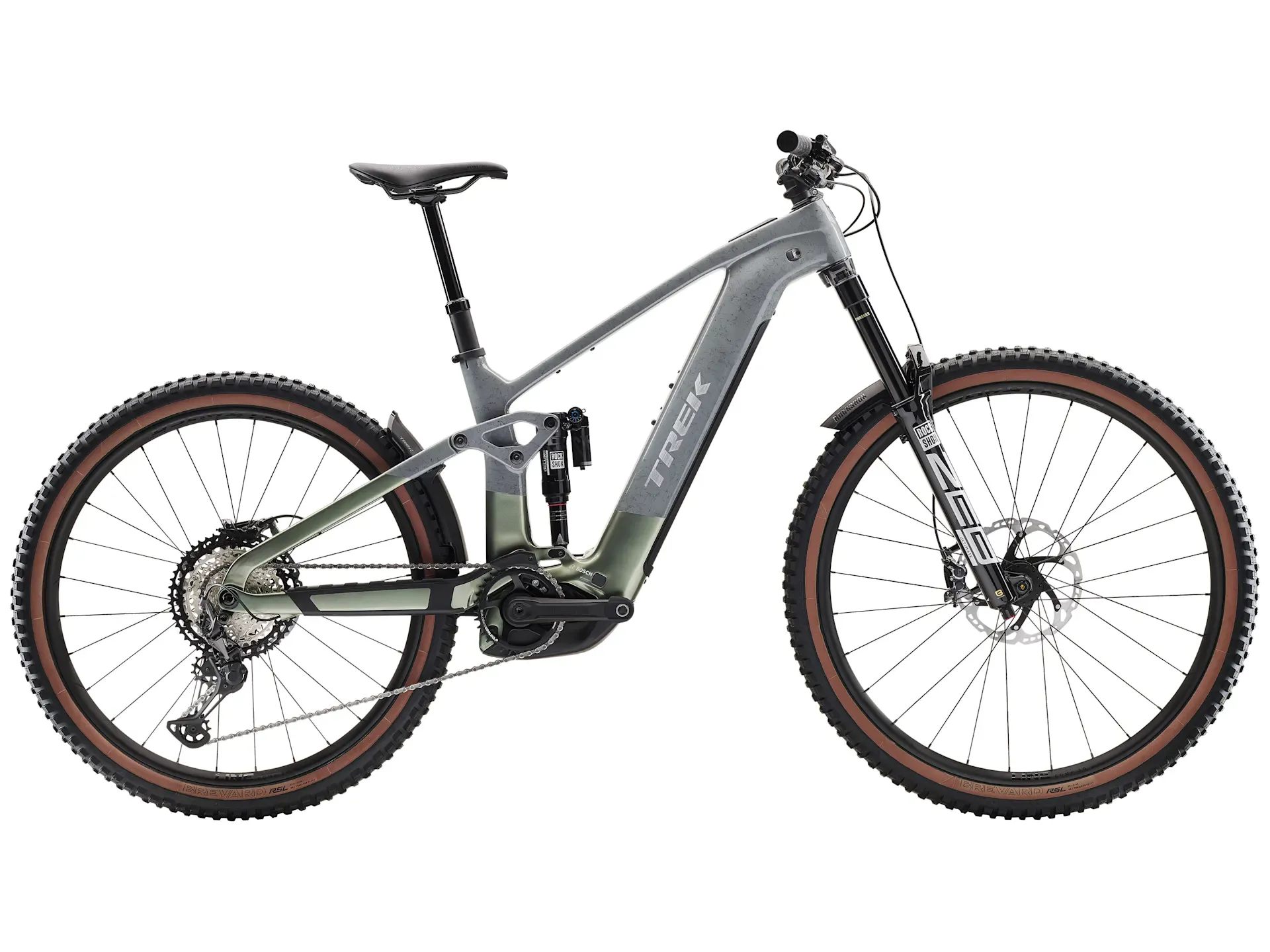 An OCLV Mountain Carbon frame with Bosch Performance CX system (100 Nm, 250 W) and a massive 800 Wh RIB 2.0 removable integrated battery. A 160 mm RockShox ZEB Select+ fork with DebonAir spring and Charger 3 RC2 damper, and RockShox Super Deluxe Select+ rear shock. Tubeless Ready Bontrager Line Comp 30 wheels, a 12-speed Shimano XT drivetrain, 4-piston Shimano XT hydraulic disc brakes and an internally-routed dropper post.