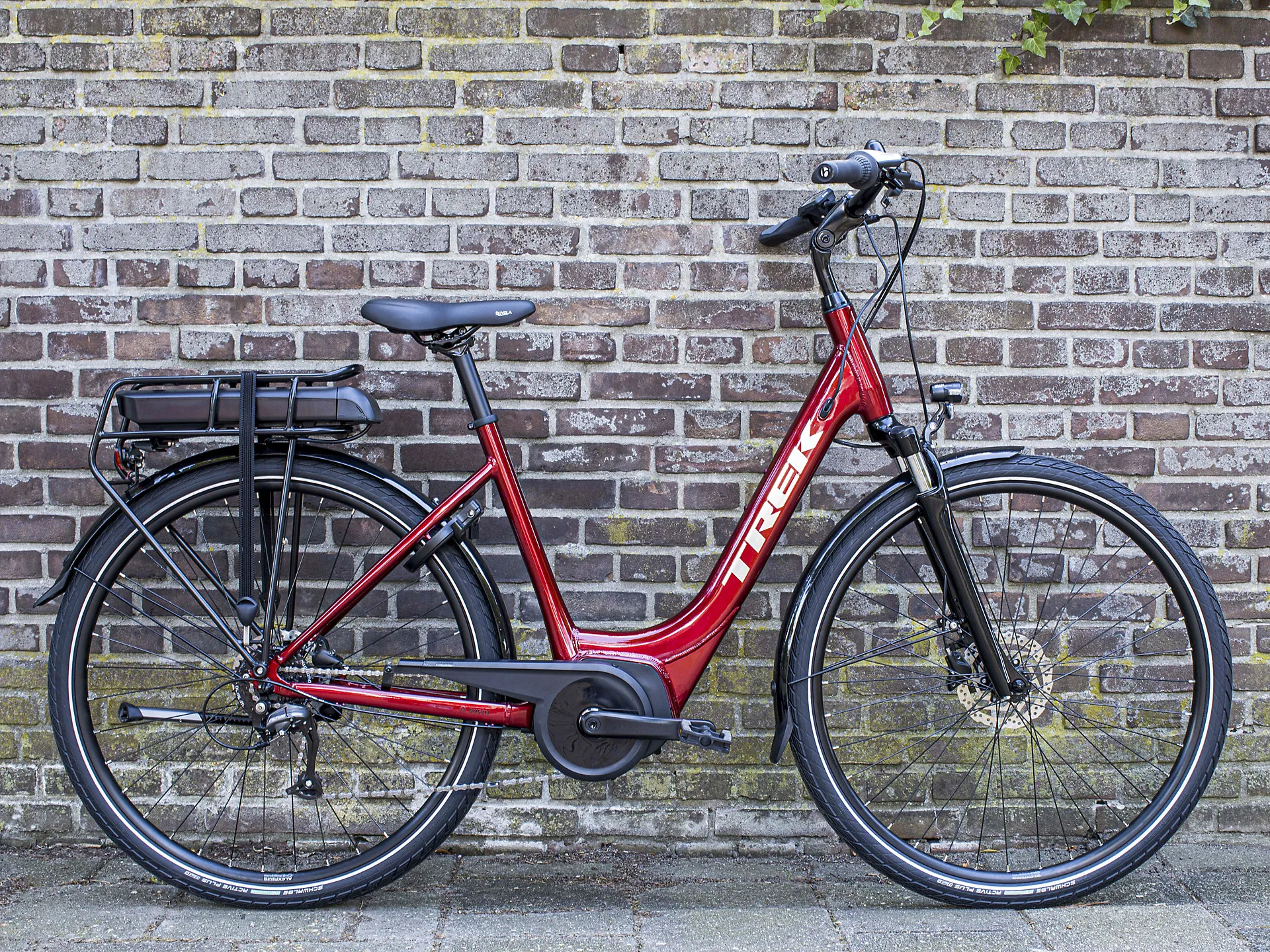 The Verve+ 1 features an 8-speed Shimano drive train, a Bosch Active Line (250 W, 40 Nm) motor, a Purion controller, and your choice of a 300 Wh, 400 Wh or 500 Wh battery. Plus, a 50 mm Suntour NEX suspension fork ideal for absorbing road vibrations for a more comfortable ride, hydraulic disc brakes, an adjustable, Blendr-compatible stem, extra wide 50c tyres for stability and traction, ergonomic grips, mudguards, lights, a rack and a lock. This e-bike also has lowstep geometry, giving you more confidence when mounting or dismounting – even whilst wearing a skirt. Trek e-bikes are quick and smooth, with predictable, easy-to-control power and a long-lasting removable battery that recharges at any household outlet.