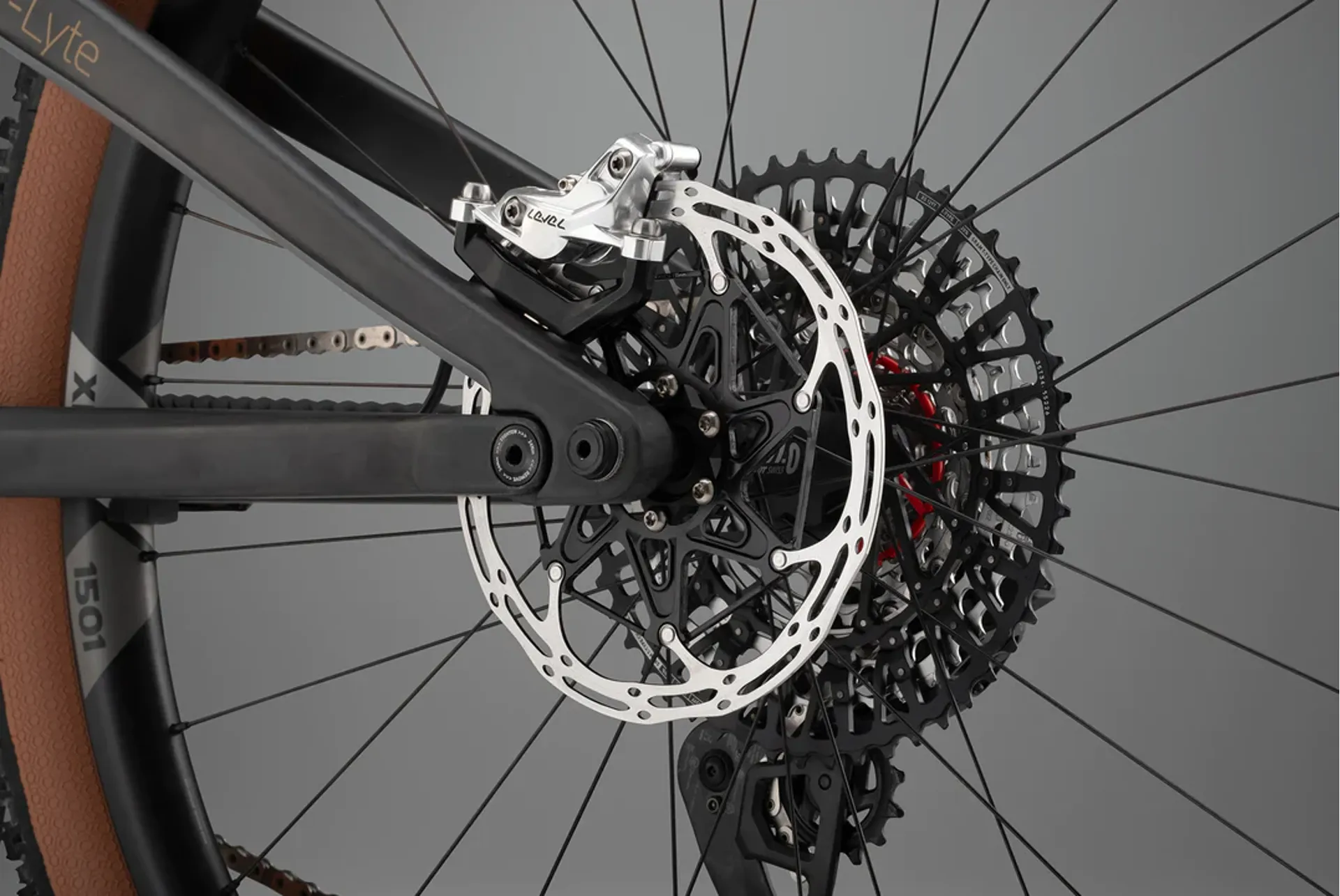 SRAM Level Ultimate Stealth, four piston hydraulic, 180mm diameter disc rotor