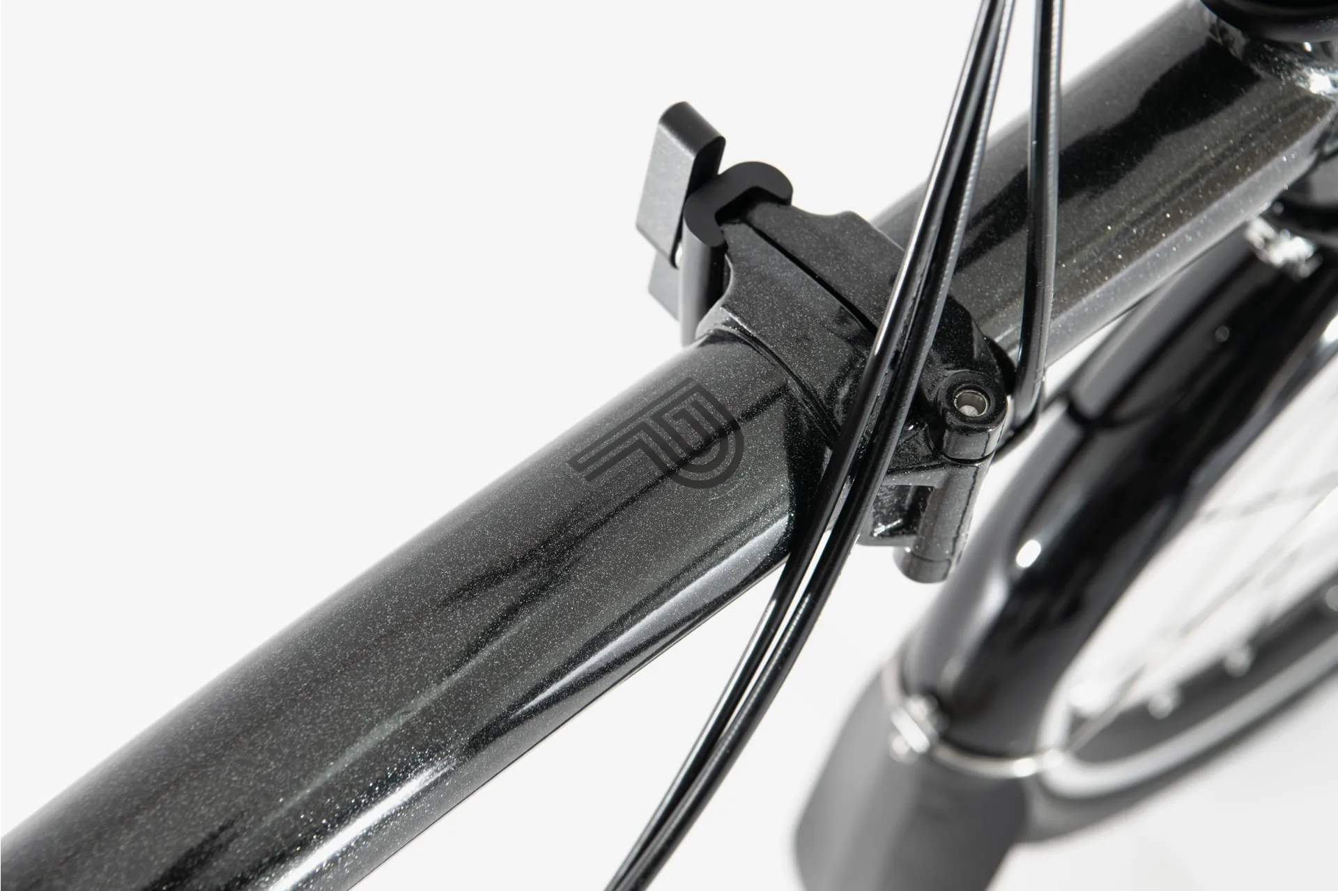 Moving with this bike is easy. The new dual-locking seat post system has two positions, fully down for storing or halfway up for rolling. The folded bike gently steers through tight busy spaces with the Superlight Saddle nose handle. Larger, lighter rolling wheels glide over uneven ground.