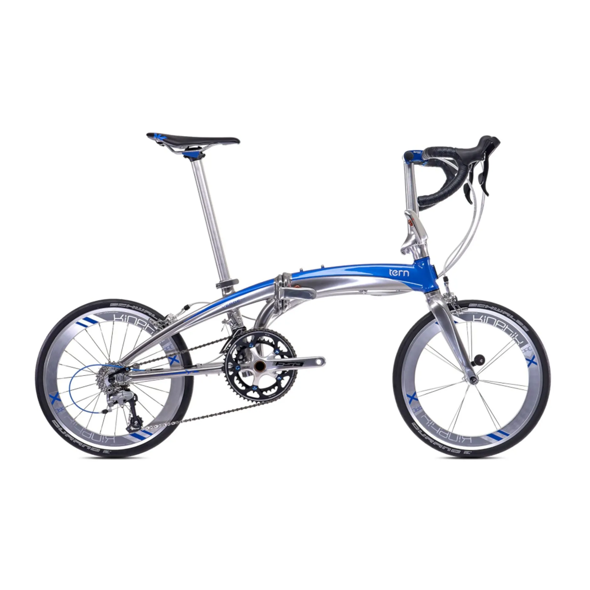 The Tern Verge x18 may look small but you won’t know it when you’re in the saddle. From the cockpit through the drivetrain to the ultra-strong 20 in kinetix™ Pro x aero wheels, the verge x18 delivers a complete road bike experience in a bike that fits under your desk.
