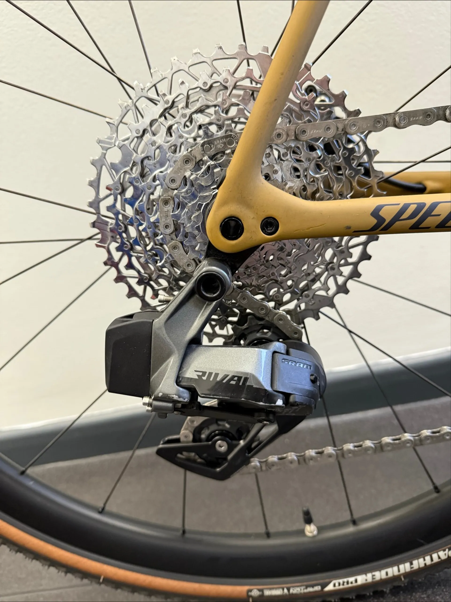 This Crux Expert comes spec'd with an intuitive and crisp-shifting SRAM Rival eTap AXS hydraulic disc groupset, incredibly tough Roval Terra C Disc wheels, and 2Bliss Ready, 700x38mm Pathfinder Pro tyres that hookup over nasty terrain.