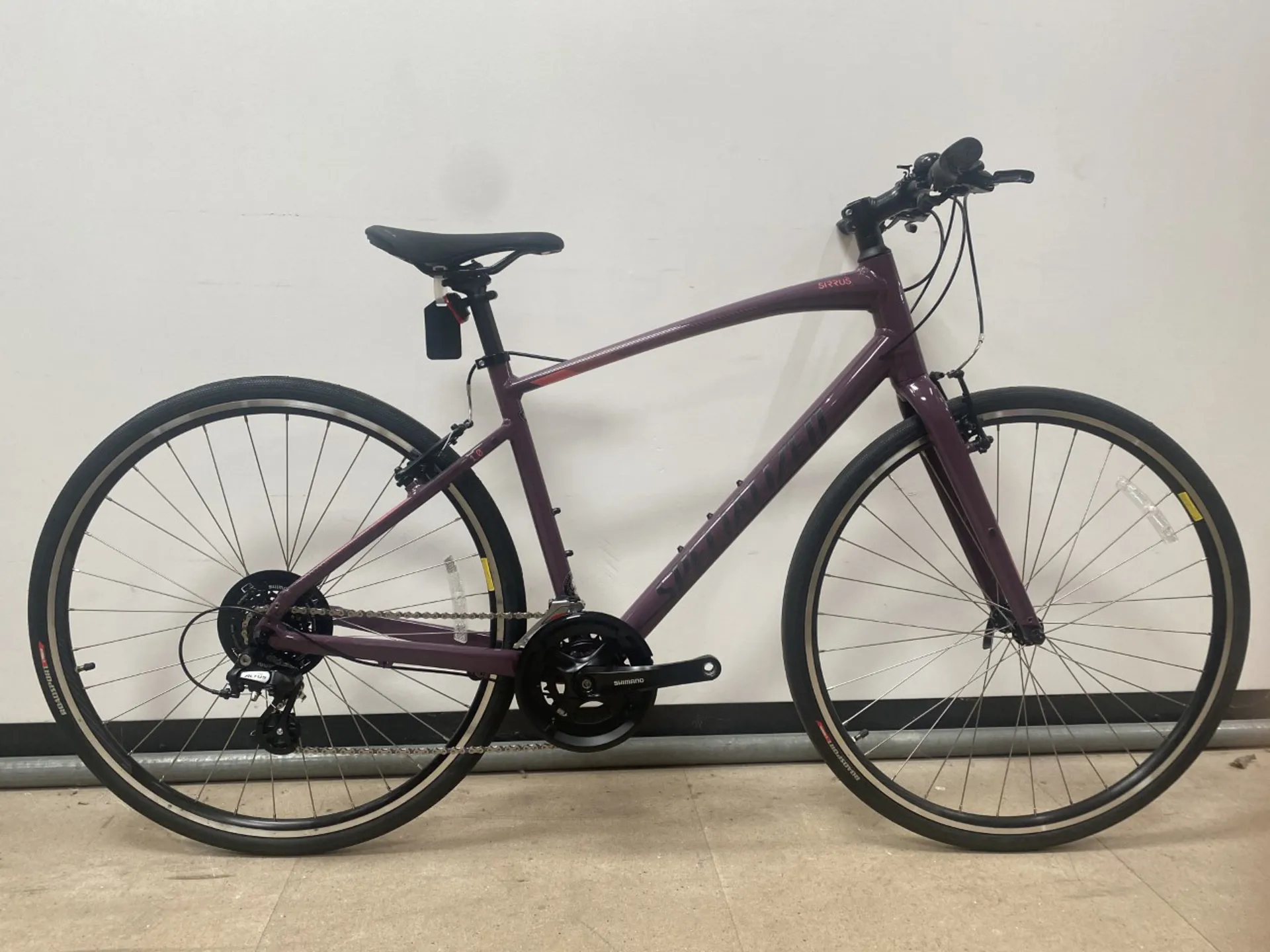 The Specialized Sirrus 1.0 is a speedy, lightweight aluminium hybrid bike that’s perfect for people who are always on the go! Featuring reliable Shimano components and fuss-free mechanical V-brakes, this hybrid is built to withstand years of daily abuse on the world's pavement.Plus, comfortable and ergonomically designed Body Geometry touchpoints are there to take the sting out of longer rides. So, as you push yourself to reach your goals, you'll feel more connected to your bike and know that you have the perfect partner with Sirrus. What’s more? The Sirrus is built with rider safety in mind – with reflective graphics on the frame and tyres for maximum visibility, so you’ll feel safe riding home at night!Life moves pretty fast, so it's a good thing Specialized have made the Sirrus to help you with all of it. Wherever you're heading, Sirrus will take you there.
