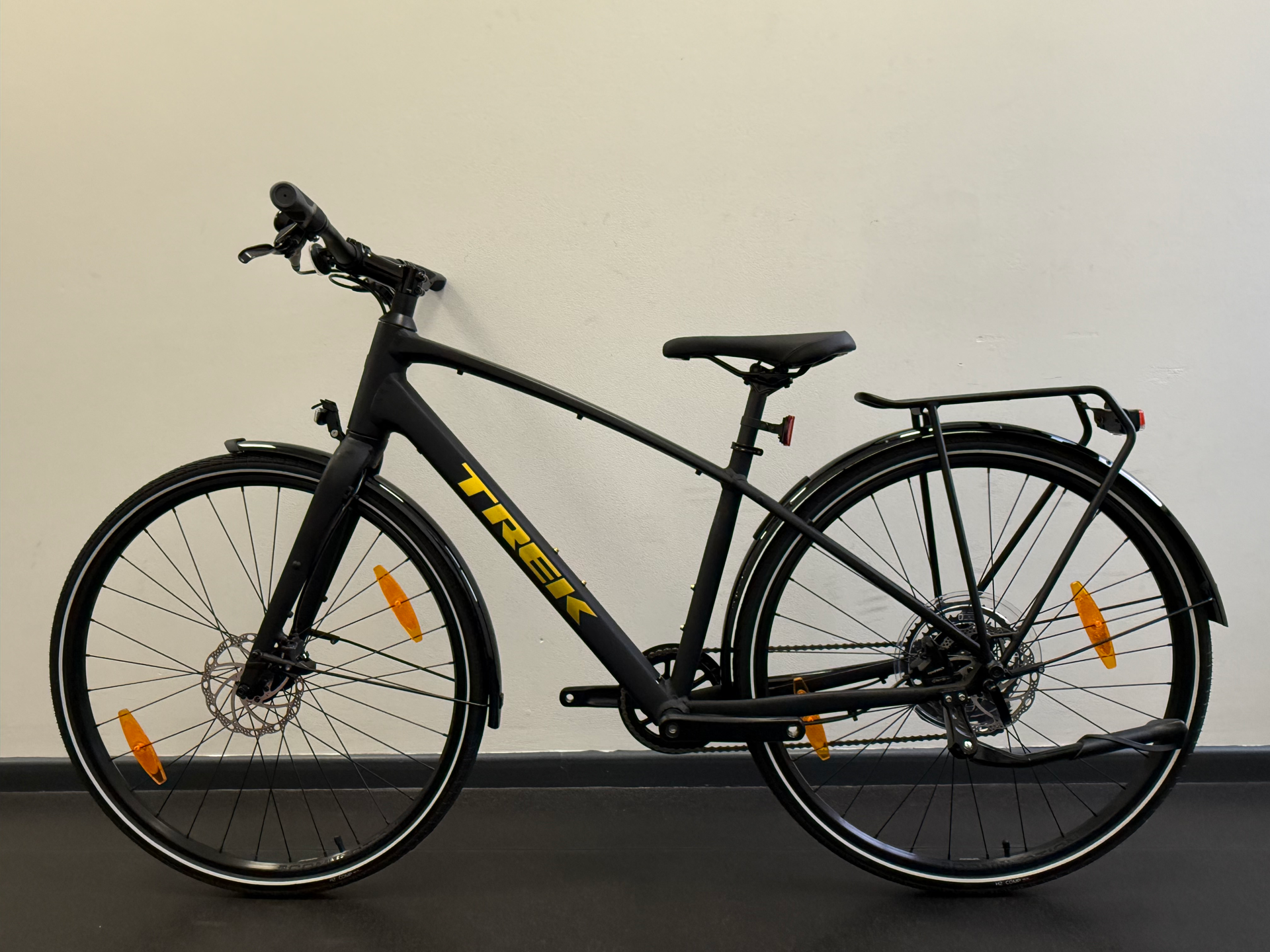 A lightweight aluminium frame with hydraulic disc brakes for all-weather stopping power, a Shimano drivetrain with 9 speeds and a wide range of gearing so you're never pedalling too hard or too soft, and all the accessories you need to ride!