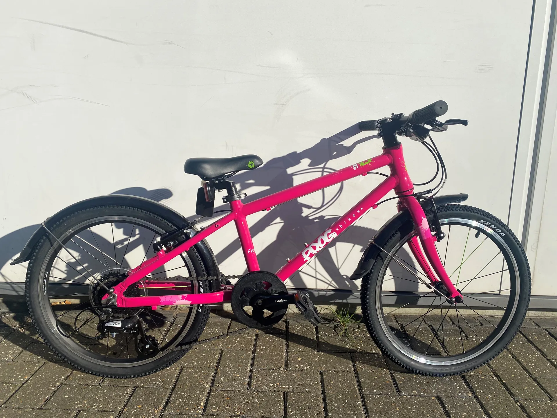 The Frog 55 is an ideal 20" wheeled bike for 7 to 8 year olds with an average inside leg of 55cm. This is the gloss pink colour version with 8 speeds.