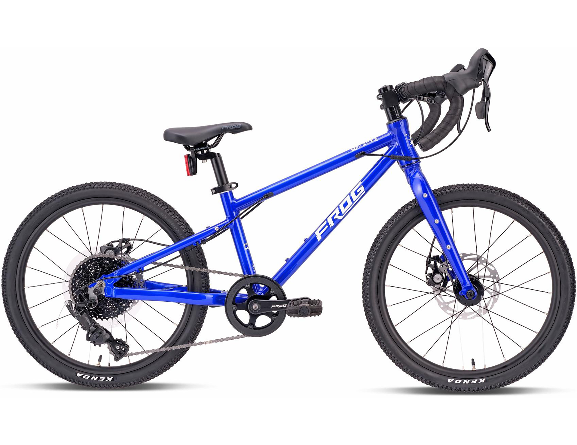 Looking for the perfect kids’ gravel bike for your child?The Frog Gravel 53 is the perfect 20-inch kids’ gravel bike for young riders aged 5 to 7, designed for off-road exploration, gravel riding, cyclocross, and bike-packing. Lightweight and durable, it features knobbly tyres that offer superior grip and stability on various terrains. The kids’ gravel bike features child-friendly, narrow, short-drop handlebars for easy control, dual braking for added safety, and Frog’s patented cranks for efficient pedalling. With youth-specific 9-speed shifters and FrogFit Technology® for seamless gear changes, it ensures an optimal riding experience. Designed to inspire confidence and support skill development, the Frog Gravel 53 is the ideal choice for young adventurers eager to tackle rugged terrain.