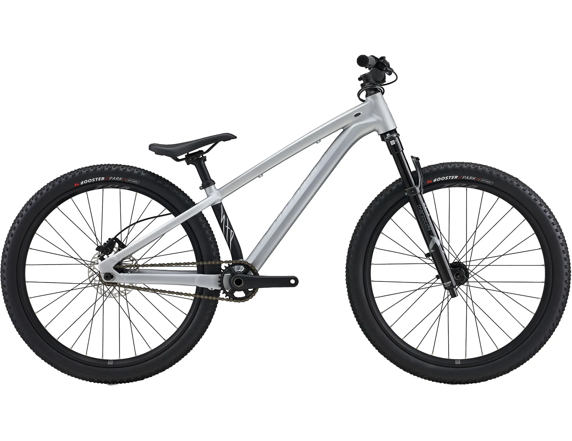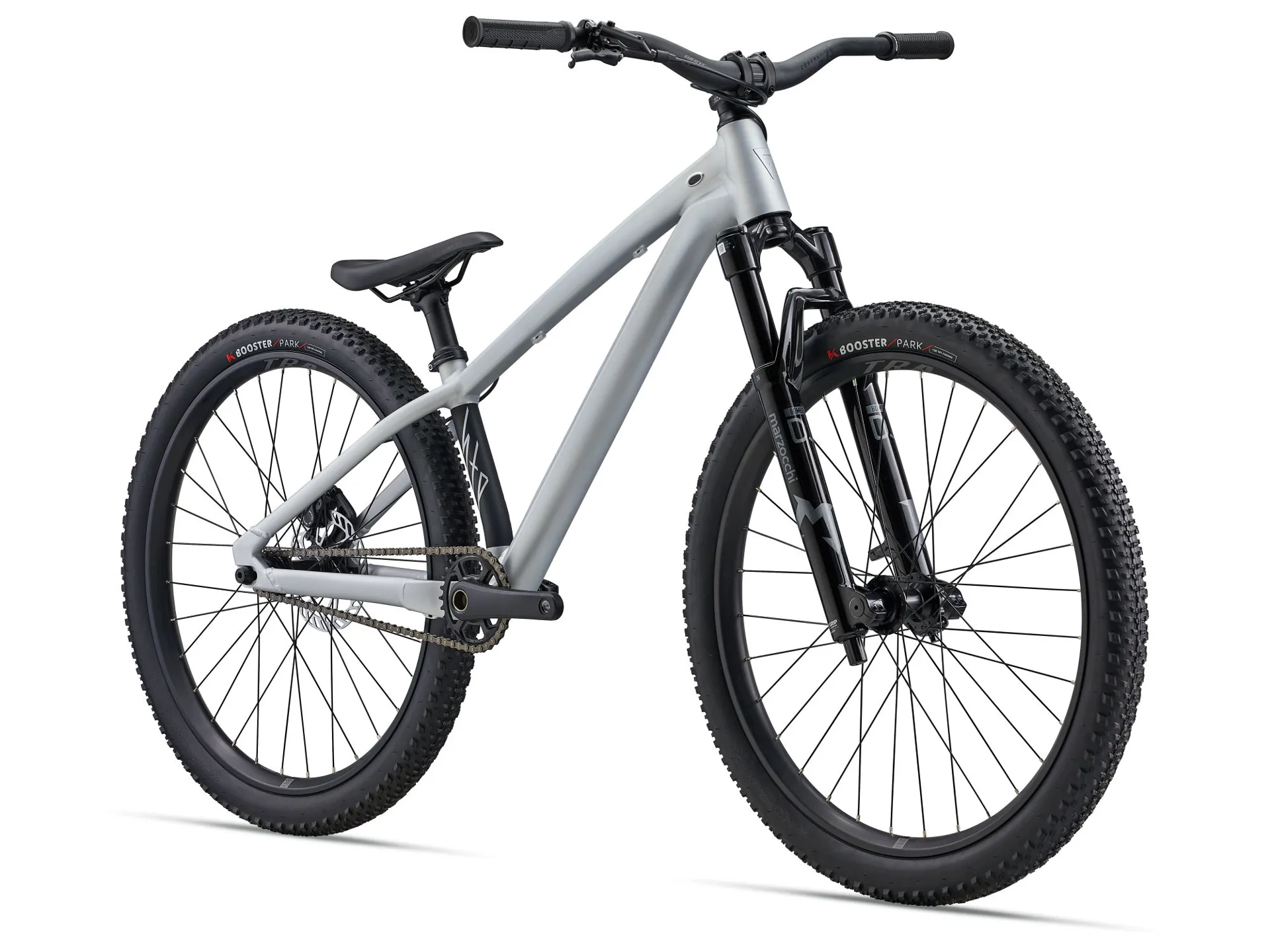 Strong ALUXX DJ frame, Marzocchi Bomber DJ fork and robust TRA 2 wheels for confident jumping, fast engagement and agile dirt-jump handling.