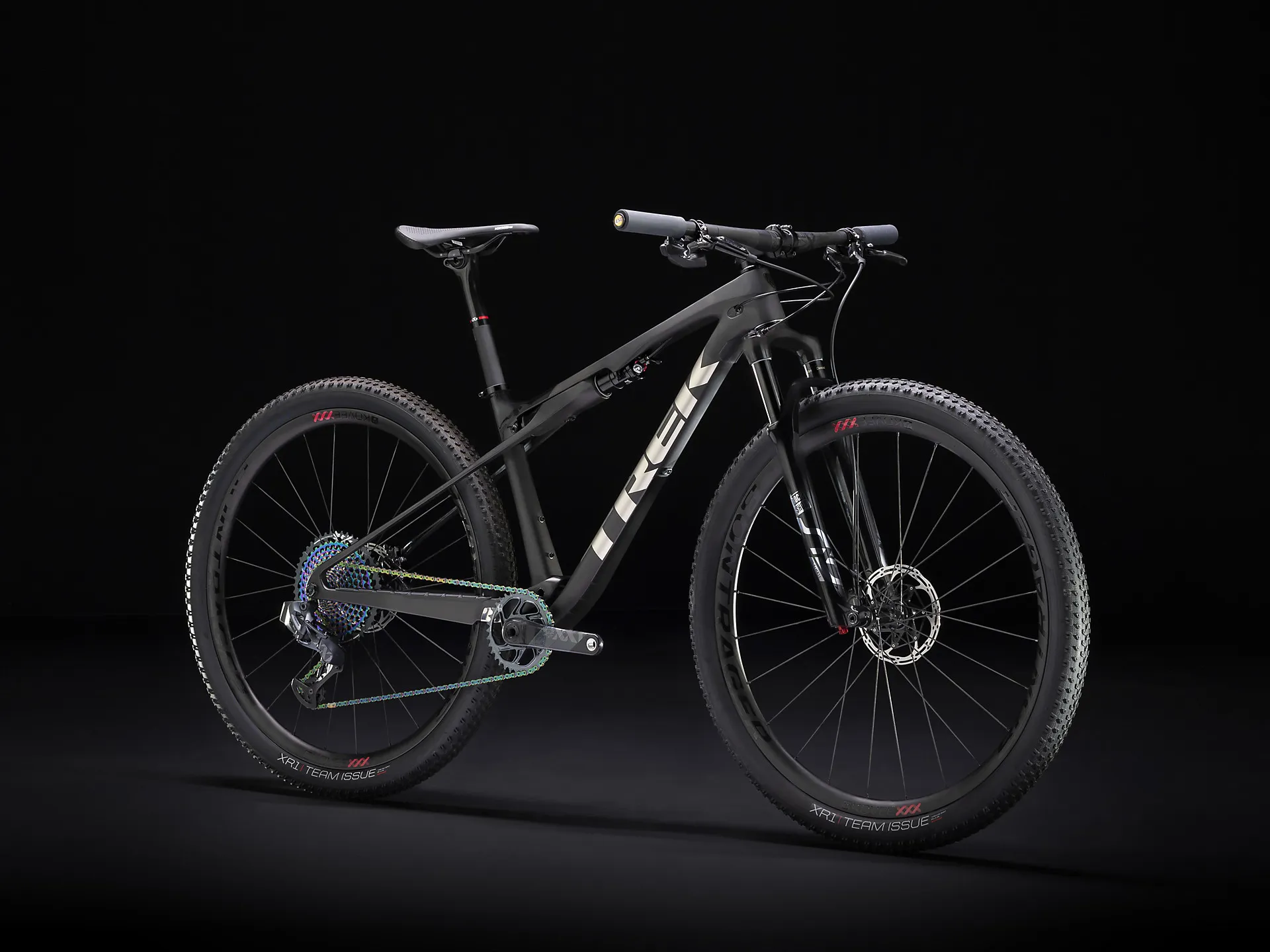 The Trek Supercaliber 9.9 AXS Men's Full Suspension Mountain Bike is the fastest, lightest, and most capable cross-country race bike that Trek makes. The high-end mountain bike parts spec features a fully wireless SRAM XX1 Eagle AXS electronic drive train and includes the highest-performance suspension, brakes, and wheels you can get.