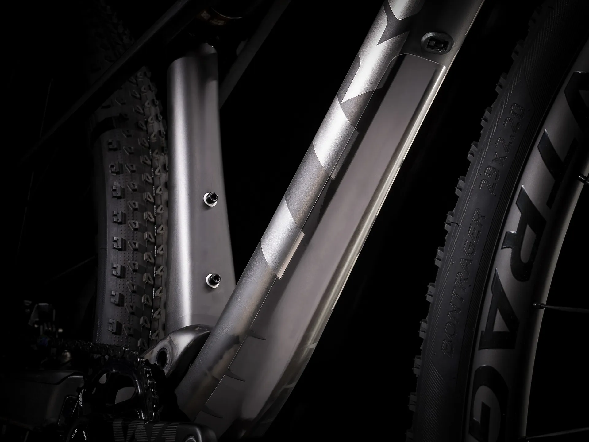 Rear Tyre: Bontrager XR1 Team Issue, Tubeless Ready, Inner Strength sidewall, aramid bead, 120 tpi, 29x2.20""
