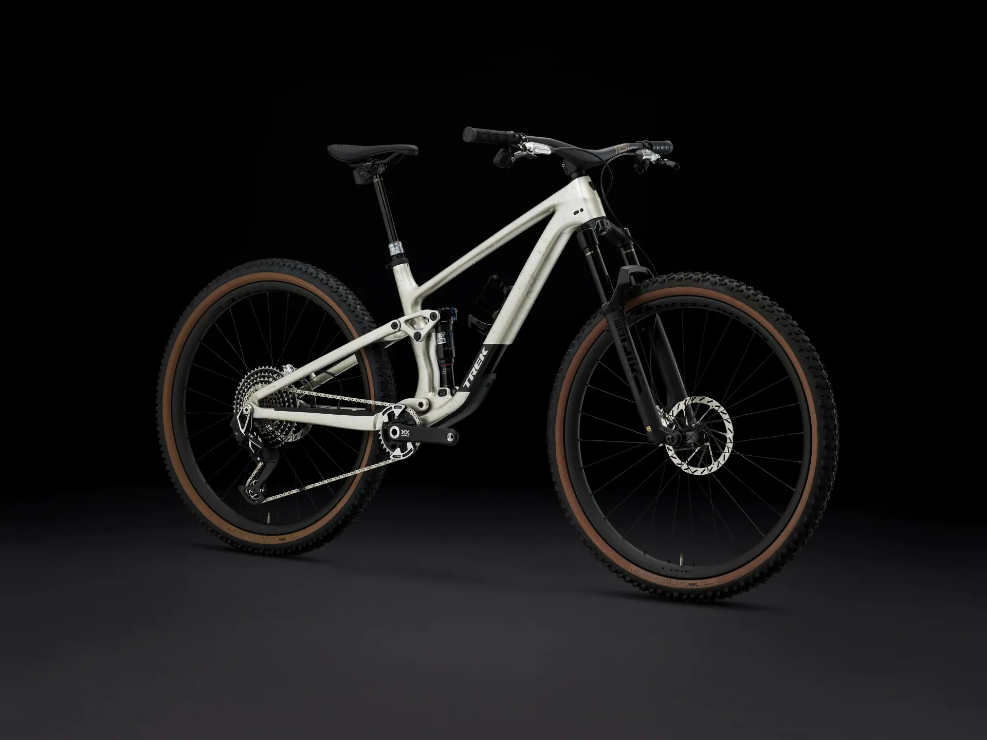 • Rear Tyre:Size: S - Bontrager Gunnison RSL XT, Tubeless-Ready, triple compound, aramid bead, 120 tpi, 27.5x2.40", Size: M, ML, L, XL - Bontrager Montrose RSL XT, Tubeless-Ready, triple compound, aramid bead, 120 tpi, 29x2.40"