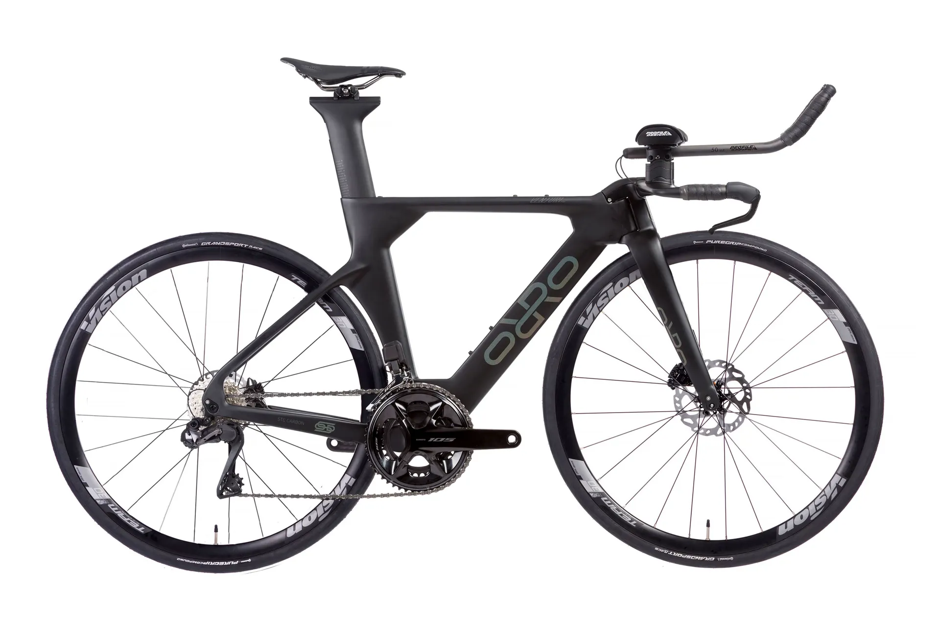 Bike fit is enhanced with adjustable specialist components. The aerodynamically profiled seatpost features a saddle clamp that slides on rails. Profile Design supply the control centre which features a wide range of angle and length adjustment.