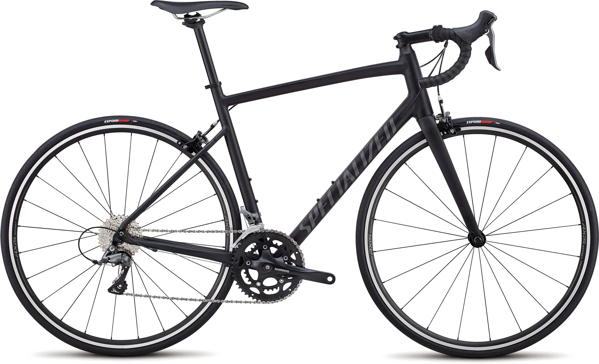 This Allez features reliable Shimano Claris shifting, durable Axis Sport alloy wheels, super-comfy body geometry bridge saddle and well-protected espoir Sport tires.