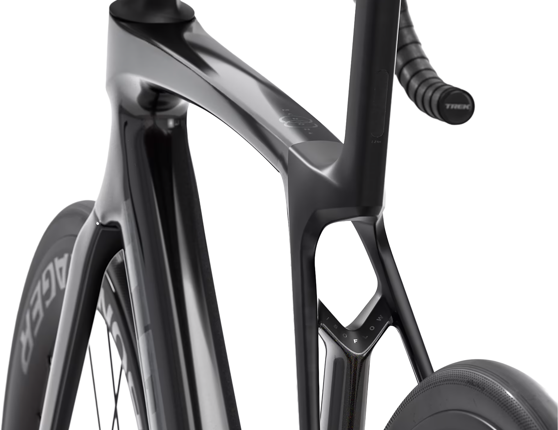 The bar/stem drops weight while improving ergonomics thanks to new blunted aero shaping. It maintains the same reach, drop and flare measurements as the Madone Gen 7 bar/stem. It also uses an updated Blendr mount. Note that this new blunted shaping has made the top of bar/stem 4 mm higher than before.