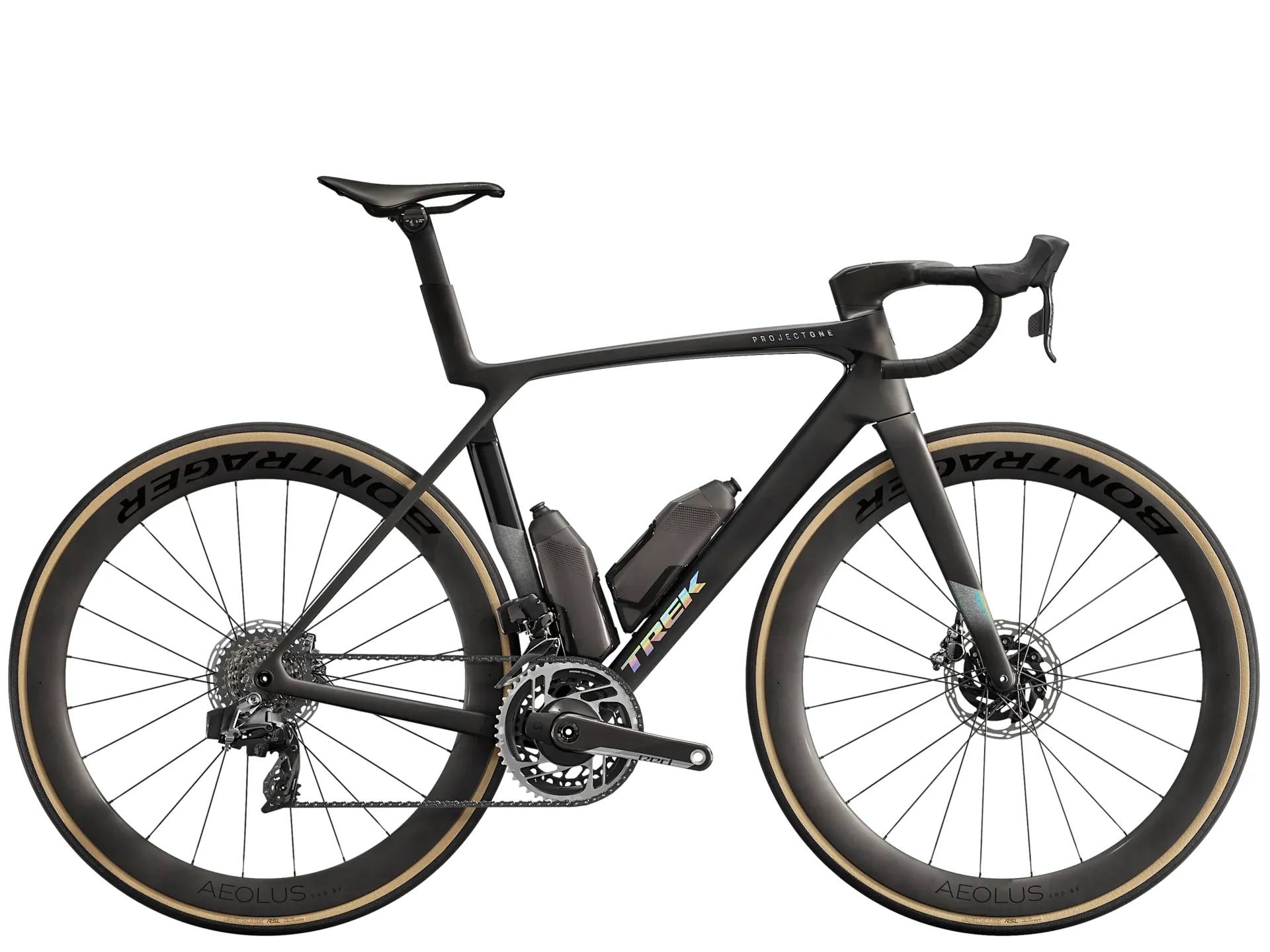 On all Project One tiers except ICON, cages will be painted to match the frame colour. ICON bikes get black cages (there isn’t enough surface area on the RSL Aero cages to apply ICON schemes). All bottles offered through Project One are black.