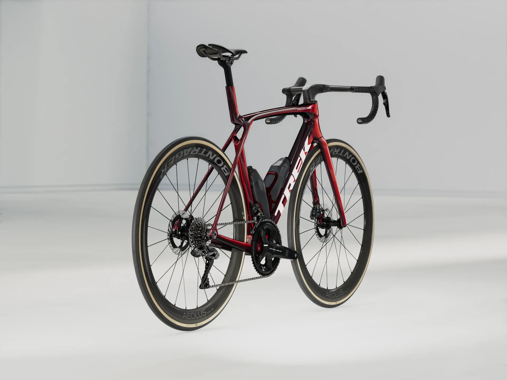 An insanely light frame made of Trek's highest-level 900 Series OCLV Carbon with aero tubing and IsoFlow comfort technology, and RSL Aero Bottles and Cages that save watts. Shimano's top road group set – Dura-Ace Di2, for lightning-fast shifts that you can customise. A universal derailleur hanger so you can get a replacement from anywhere. Plus, it's topped off with Bontrager Aeolus RSL 51 tubeless carbon wheels and a Trek Aero RSL one-piece bar/stem.