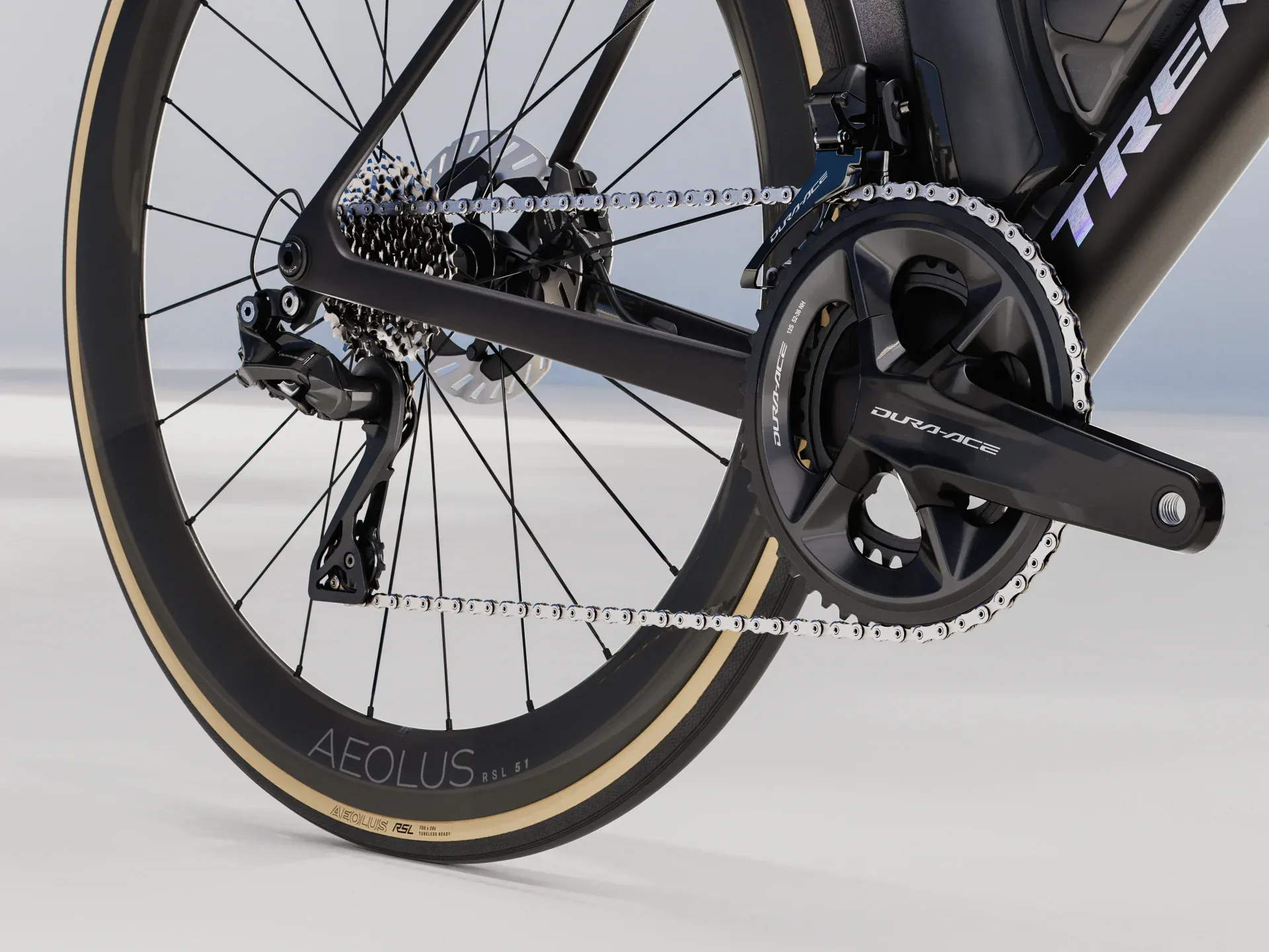 • Rear Tyre:Bontrager Aeolus RSL RD, Tubeless-Ready, cotton construction, aramid bead, 170 tpi, 700x28 mm