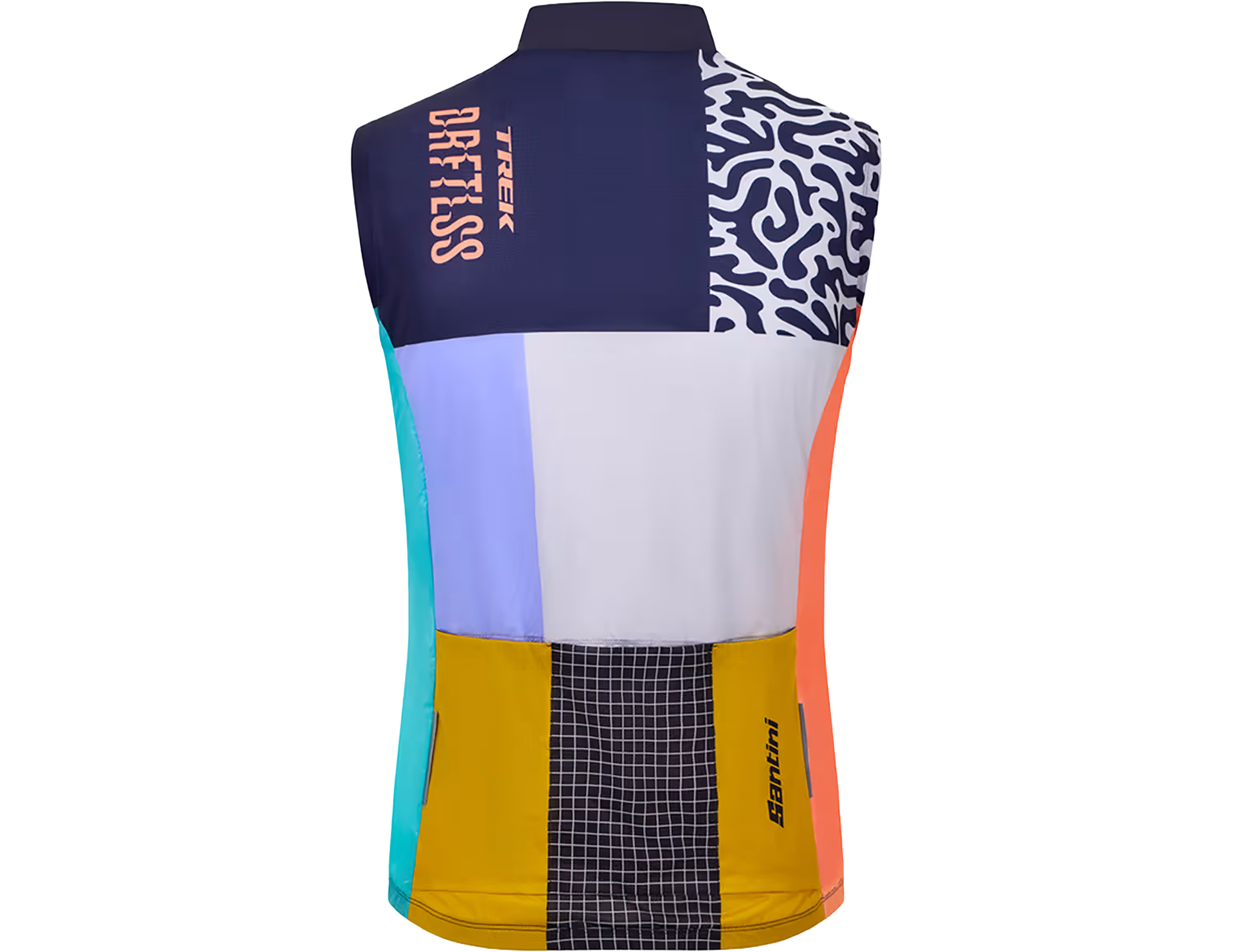 The Trek Driftless Replica Vest is made for cool mornings, mountain descents, and long days that require layers. It is official team clothing made by Santini with the Trek Driftless team logo proudly displayed. The vest is constructed with a wind-blocking front panel and a breathable rear mesh panel for comfort on any ride.