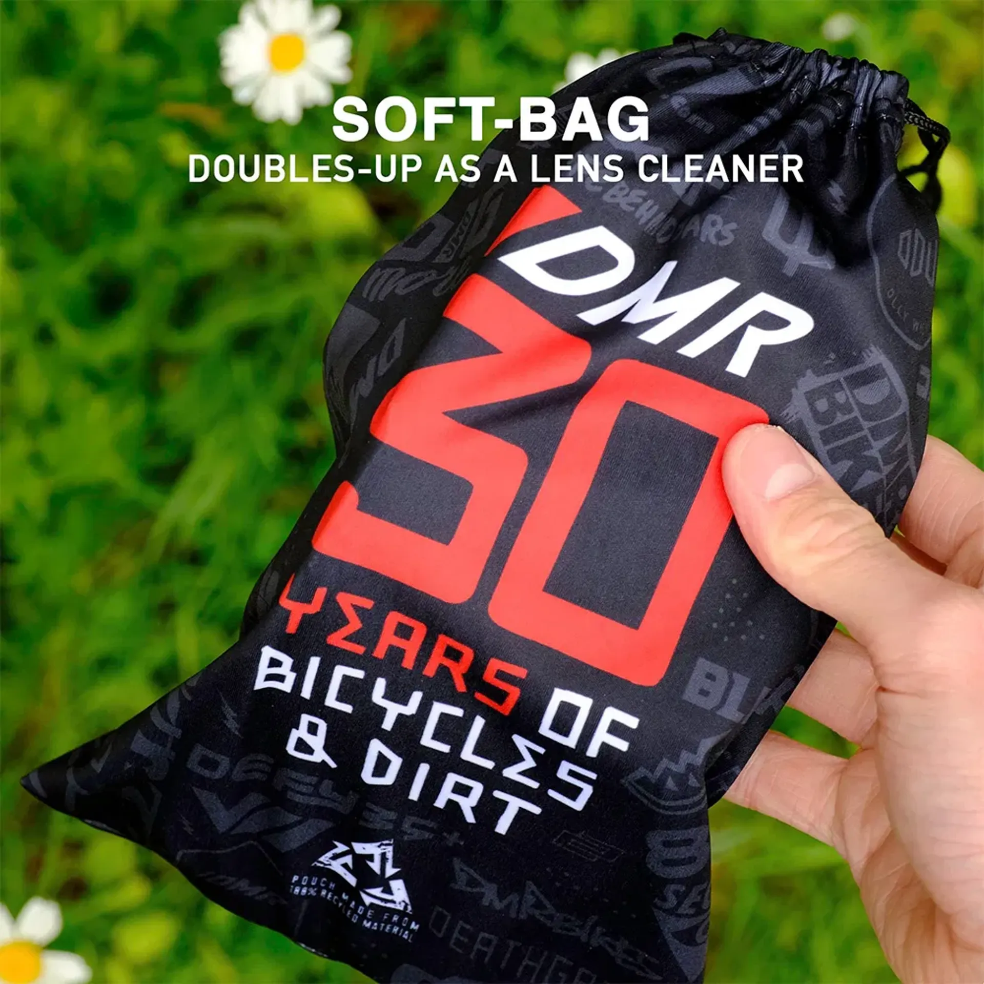 When it came to collaborating on products with likeminded brands, Melon Optics was a total no-brainer. Almost half the DMR Team are also sponsored by Melon goggles, and without doubt they produce some of the best quality goggles and lenses available. All DMR had to do was take care of the graphics for the straps and the soft-bag that also doubles-up as a lens cleaner.