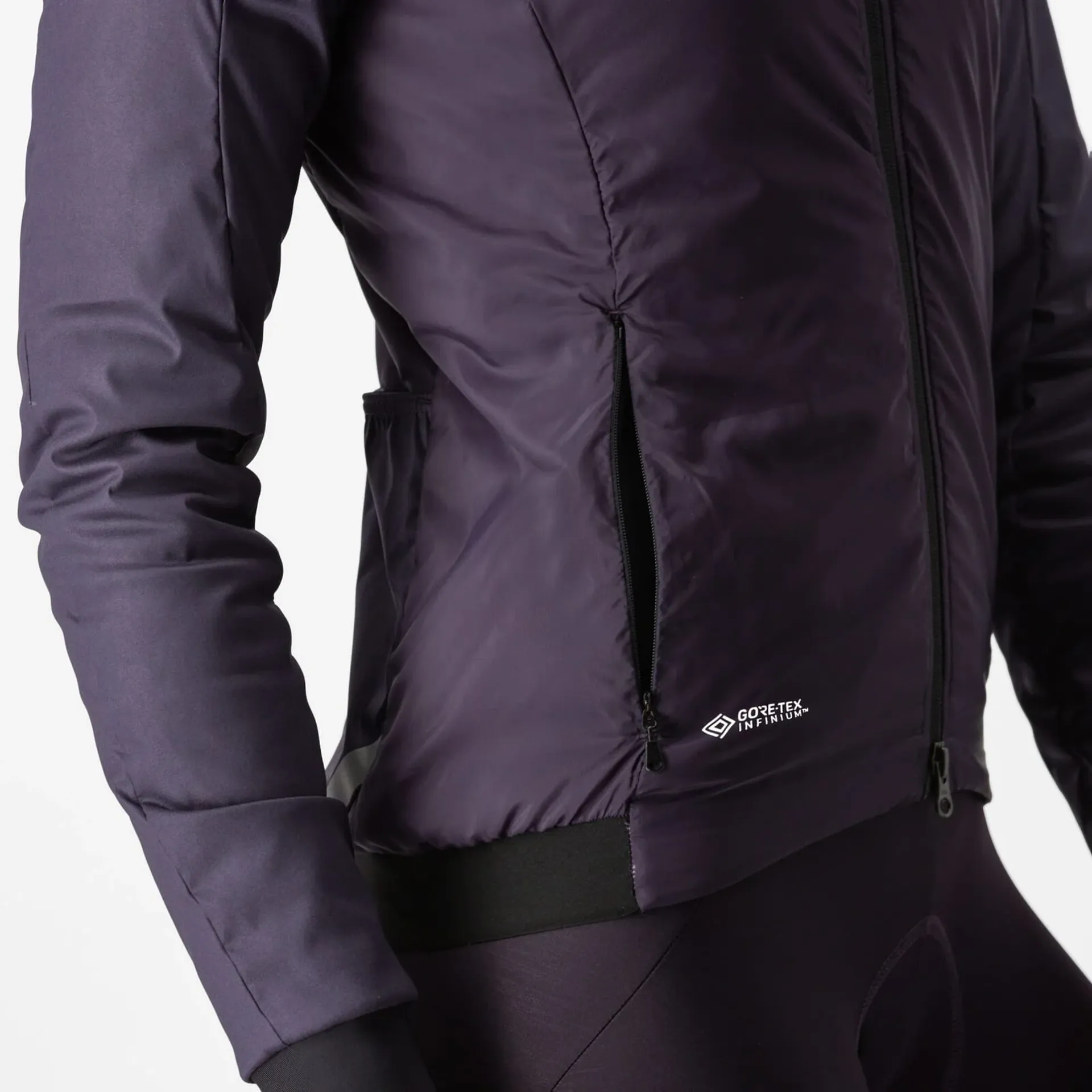 Soft and snug throughout, it's actually constructed from a three-layered material, utilising Castelli FLY Fabric Technology. The inner layer is Gore-Tex Infinium™ Windstopper®, a windproof yet breathable material that feels good against your skin and helps remove moisture to the outside. Next is a warm yet super-light insulation layer, CLIMA SL, that also happens to be recycled. Finally, the attractively shiny outer shell is windproof, water repellent, and again 100% recycled.