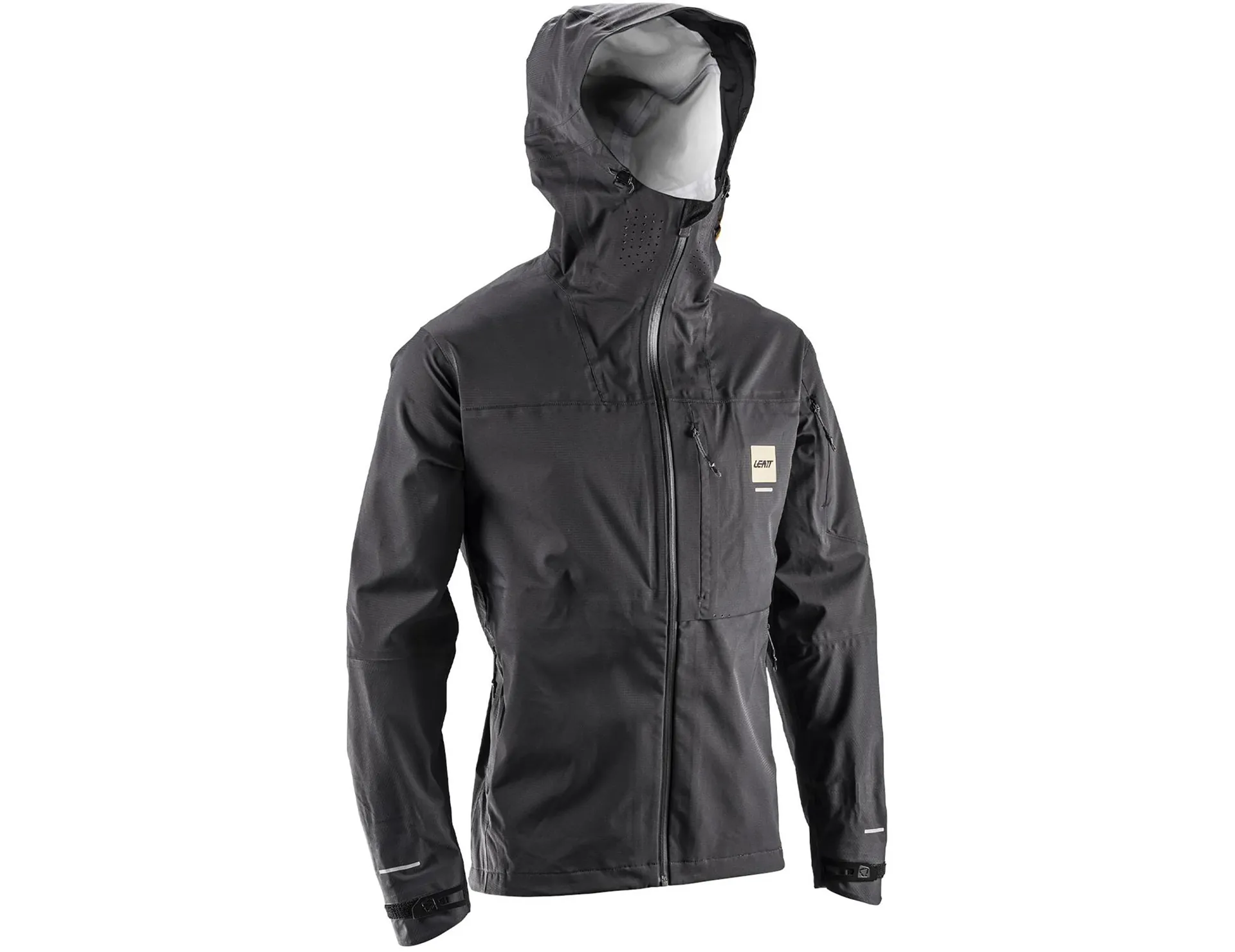 Built with Leatt's HydraDri Max 3-layer fabric, it delivers 30,000mm waterproofing to block heavy rain and 30,000g/m² breathability to release sweat and heat, with a PFAS-free DWR finish that sheds dirt and water. The improved cut and exceptional 4-way stretch ensure easy movement, while the ClimbVent system lets you unzip for ventilation on long climbs. A chest pocket with goggle wiper, padded phone sleeve, and lift-pass pocket keep your essentials close, while the Ride Adaptive Hood’s (RAhD) patent-pending magnetic system keeps it in place—either fixed to your helmet so it won’t blow off at speed, or secured to your back so it won’t flap like a parachute. Reinforced elbows, waterproof storm cuffs, and reflective details round out a jacket built for serious rides in brutal weather.