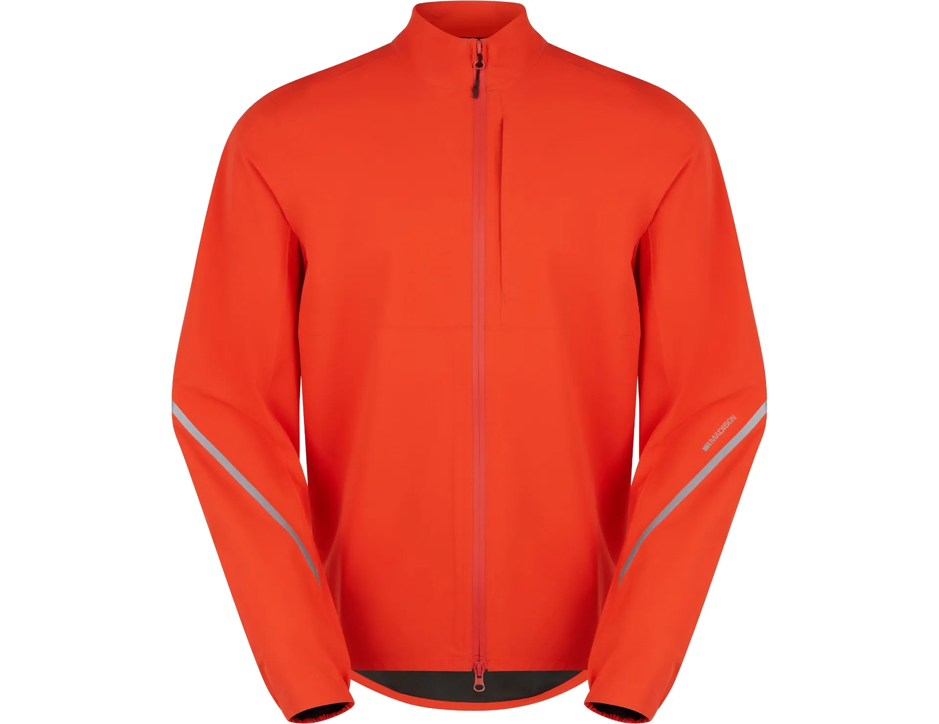 Waterproof cycling jacket with reflective details, packable design, and a relaxed on-bike fit for all-weather rides.